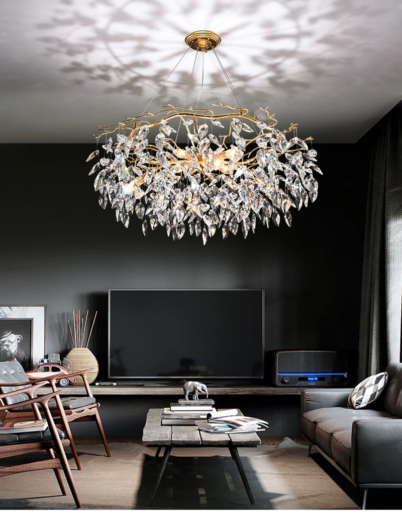Nordic LED Luxury Crystal Chandeliers Tree Branch Hanging Pendant Lighting Living Room Bedroom Hotel Villa Decor Ceiling Lamps Fixture