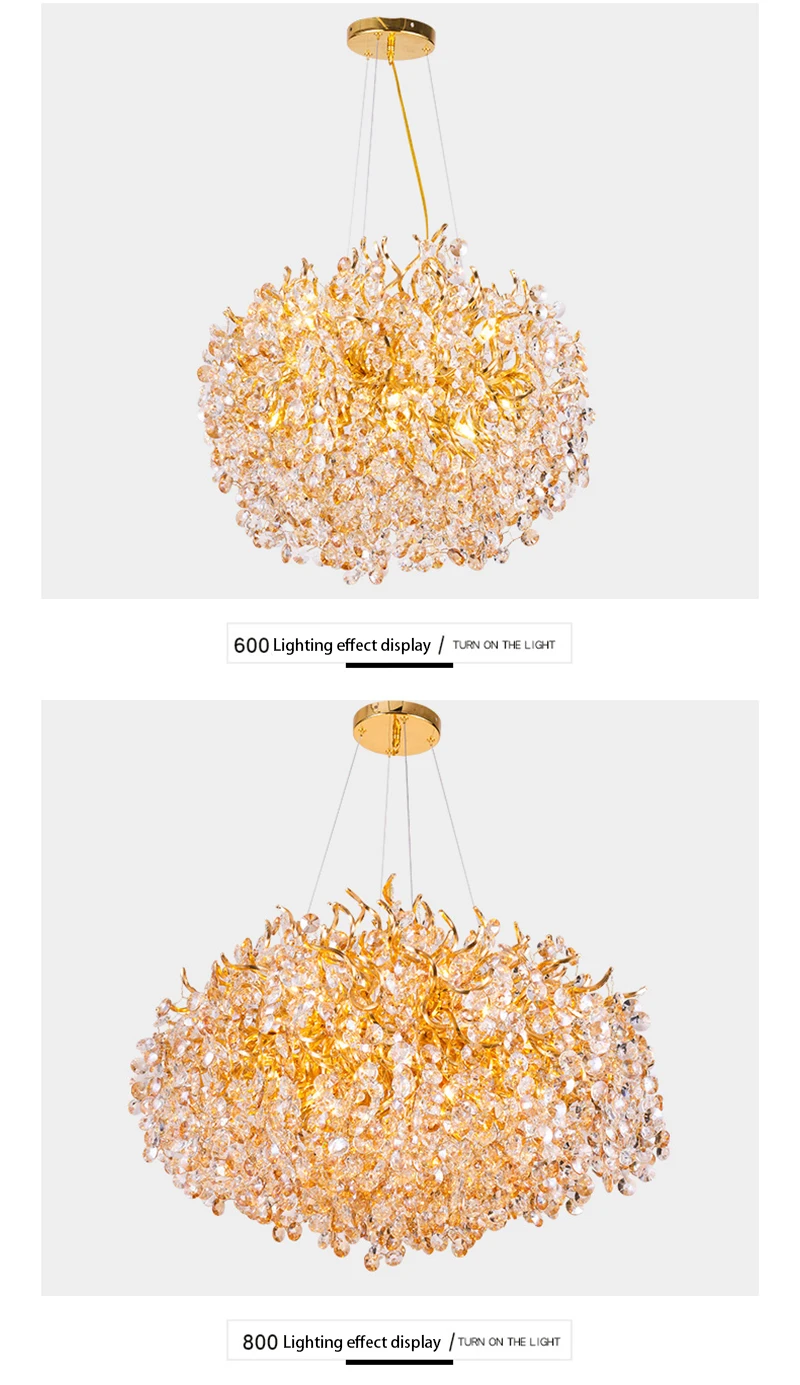 Nordic Modern Luxury LED Crystal Chandelier Golden Round/Long Pendant Light Home Decoration Living Room Suspension Luminaries