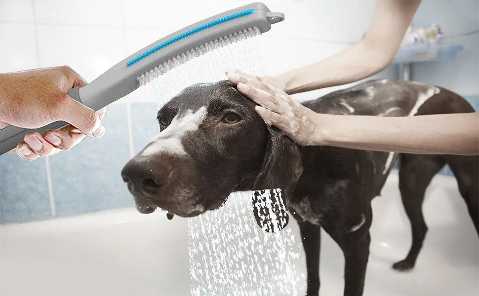 Upgrade Dog Shower Attachment, with its unique full coverage shower design, provides fuller coverage and penetration of thick fur for maximum cleaning power and effective shampoo removal. Adjustable water flow control reduces pet anxiety.