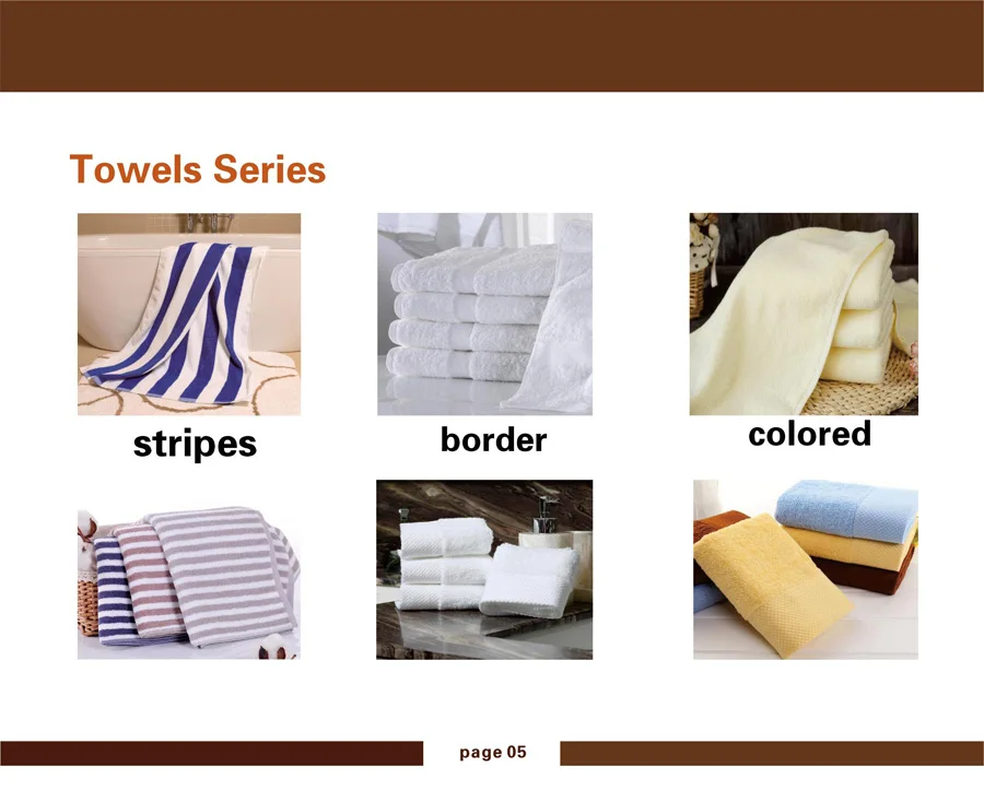 Through our worldwide agents and distributors, now we supply textiles for many world famous hotel groups. We have many years' professional manufacturing experience, so we can have good quality control; we have many years' professional sales experience, so we can have good communications with our clients. "Good quality, better price, the best service" is our direction. We look forward to having win-win cooperation with worldwide friends!