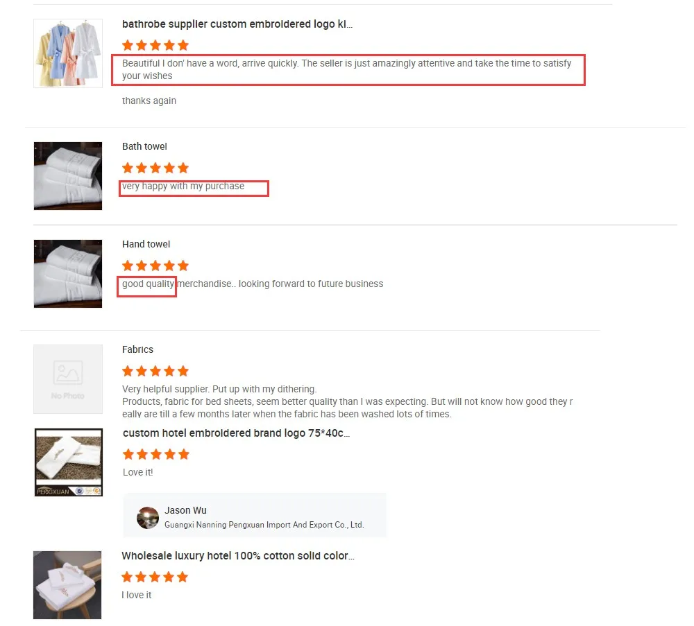 We are Guangxi Nanning Pengxuan Import And Export Co.,Ltd,as a leading and professional hotel textile manufacturer in China, has focused on this area for many years. Our main products include hotel bed linens, hotel towels,bathrobes and F&B linens. Also we make some textiles for airlines, cruise ships, hospitals and other fields. We supply a full set of solutions for hotel groups, airlines, and cruise ships.