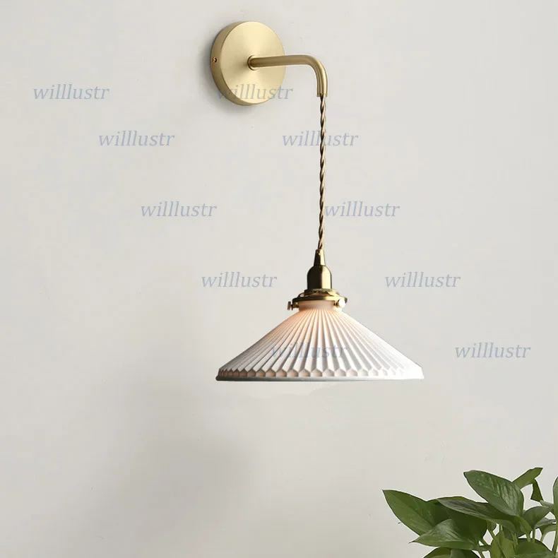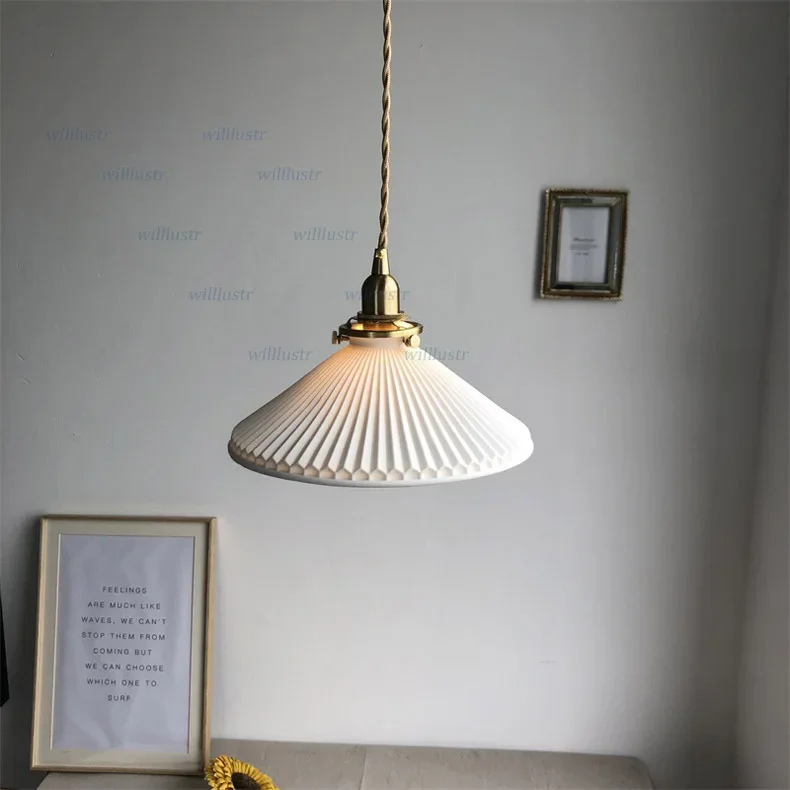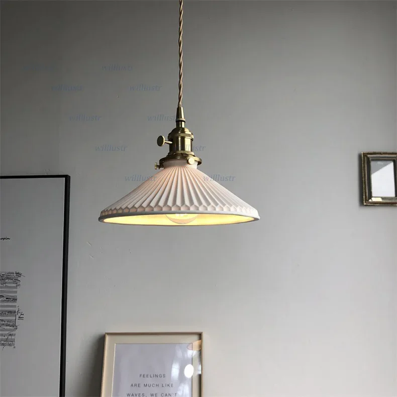 Retro Ceramic Pendant Lamp Brass Suspension Light Hotel Restaurant Bedside Porch Bar Porcelain Hanging Ceiling Chandelier