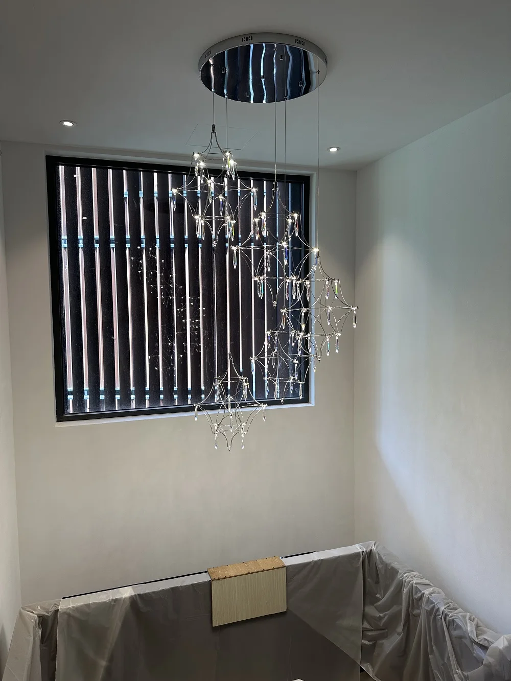 Staircase crystal chandelier postmodern restaurant Ceiling pendant duplex villa stainless steel long chandelier indoor lighting