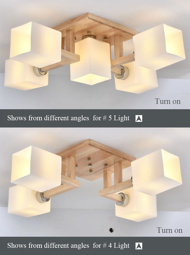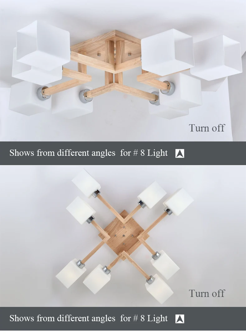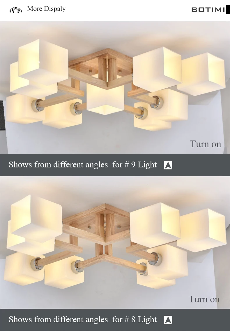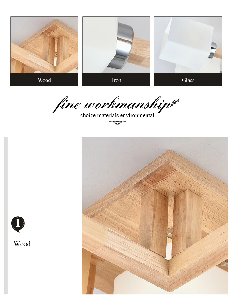 BOTIMI Natural Wooden Ceiling Lights For Living Room Cube Glass Lampshades Ceiling Mounted Bedroom Lustres Modern Dinning Lamp