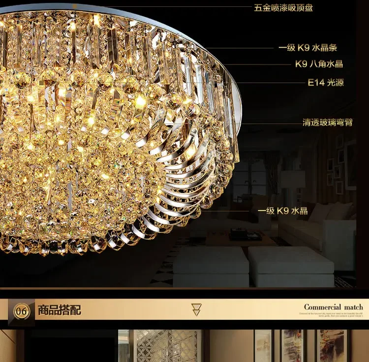 Crystal Ceiling Lights Modern Lamps Luxury Ceiling lamps Chrome luminaria deckenleuchte Round Crystal Lighting Home LED Fixture