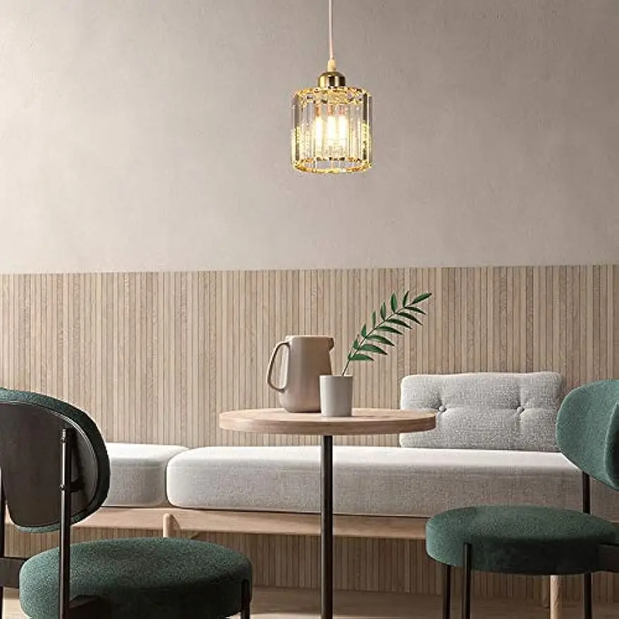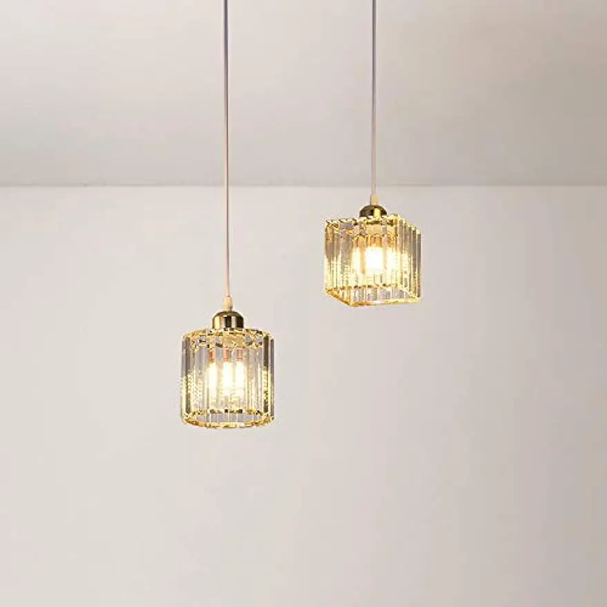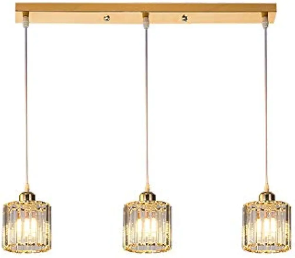 Crystal Pendant Lighting Fixture Modern Copper Chandelier Gold Ceiling Hanging Lamp - 3-Lights Suspension Lamps for Kitchen