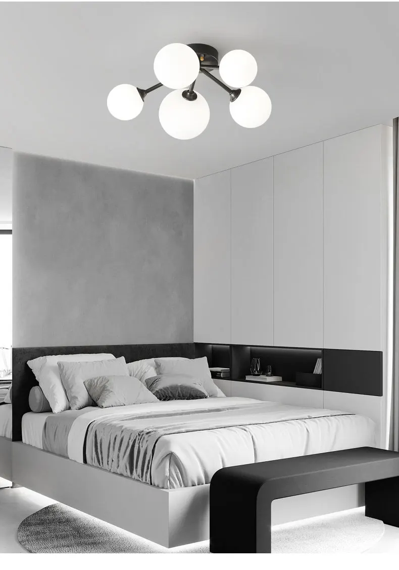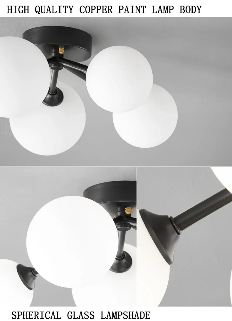 Led G9 Post Modern Spherical Frosted Glass Ceiling Light For Home Living Room Dining Room Bedroom Black Copper Luxury Lamp