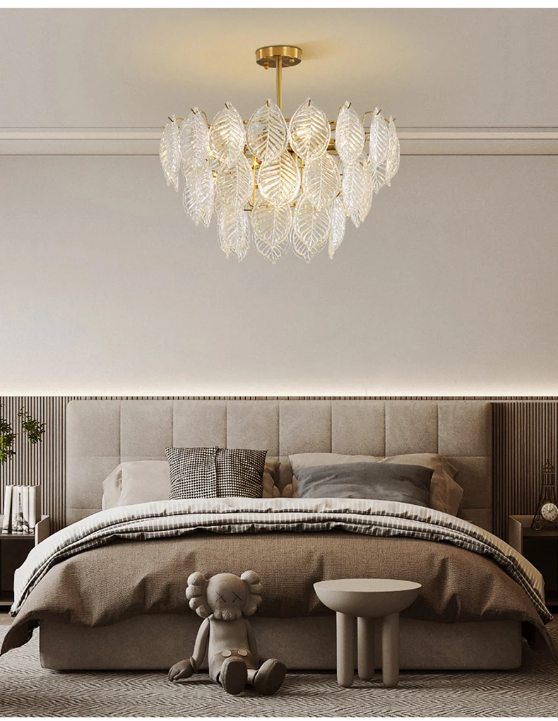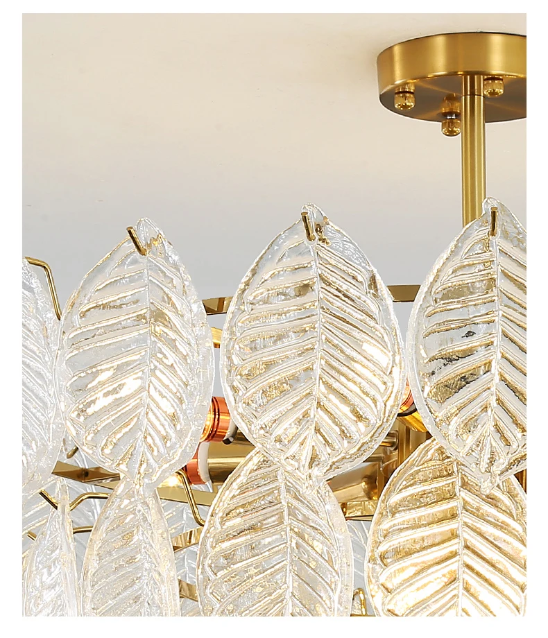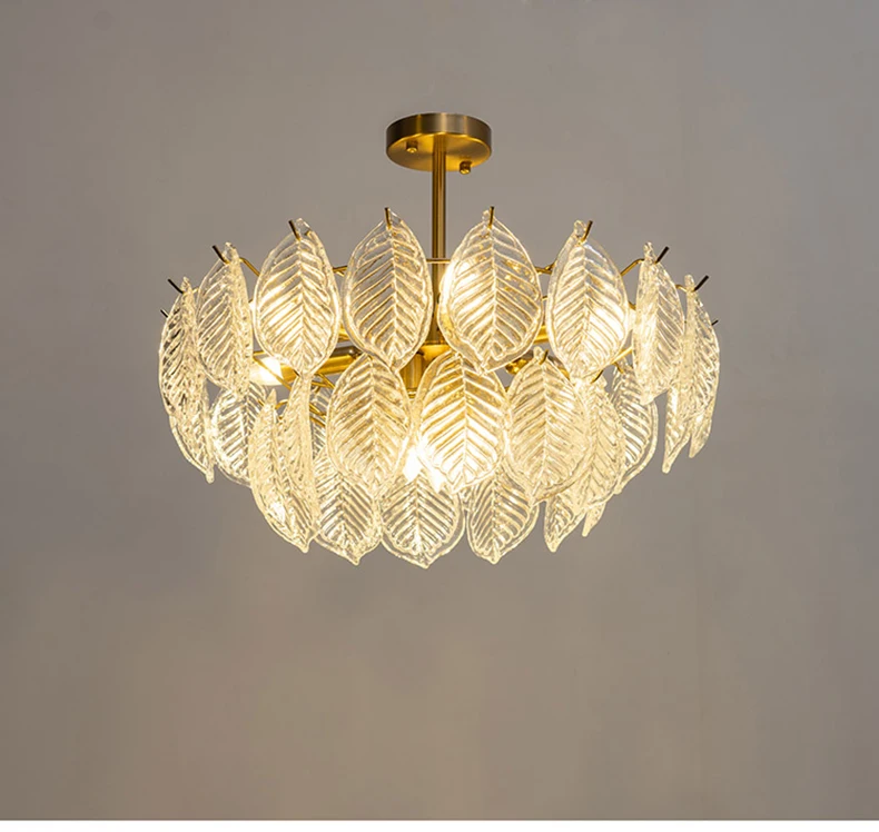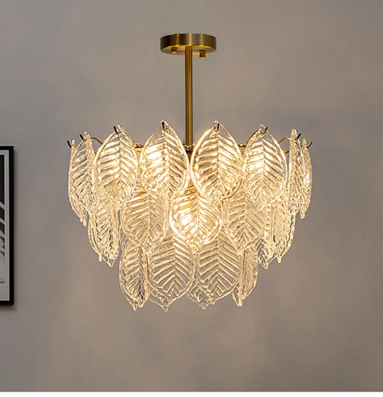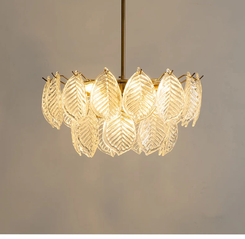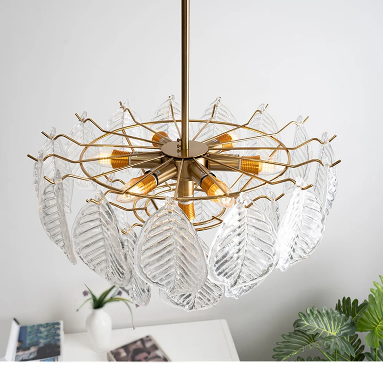 Modern Ceiling Chandelier For Dining Room Leaf Glass Lampshade Hanging Lamp Living Room Pendant Light Suspension Design Fixture
