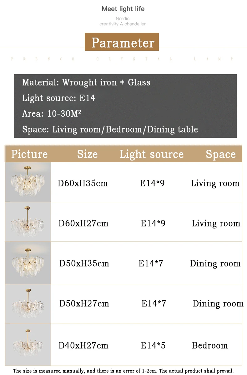 ParamaterChandelier Suitable for a variety of rich scenarios like living room,bedroom,study,dining room...
