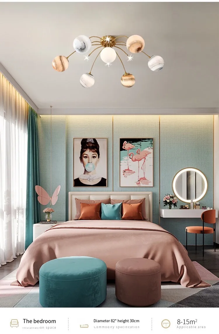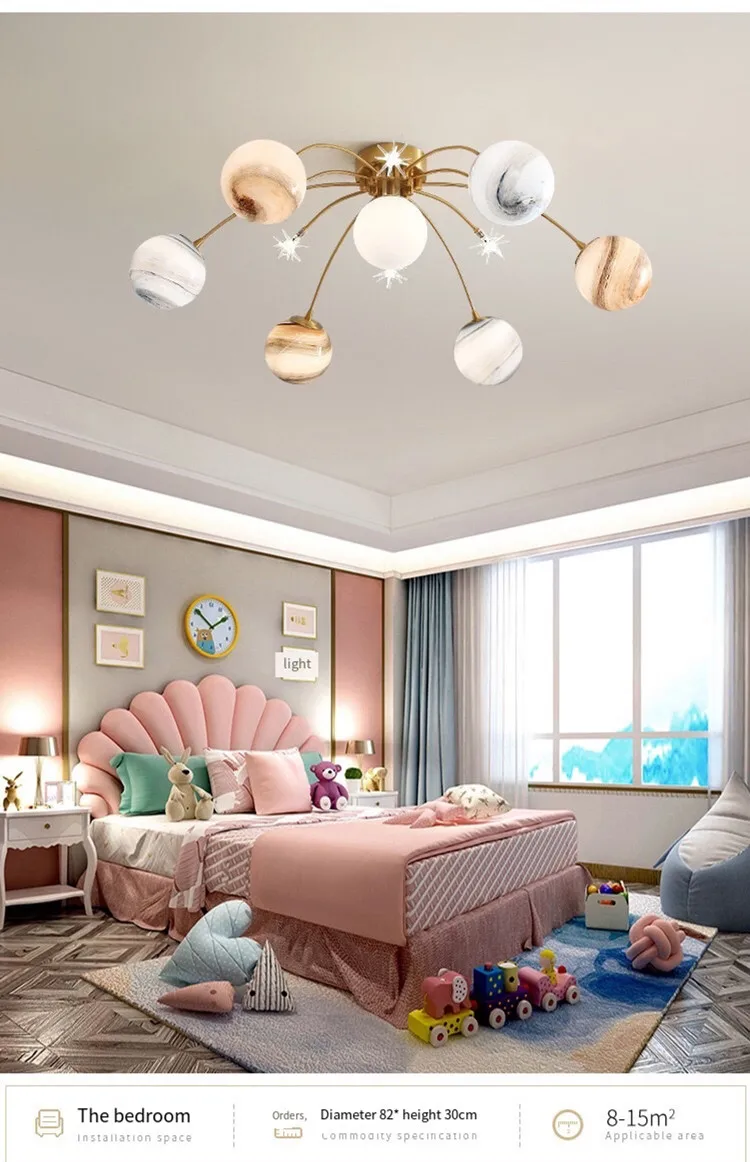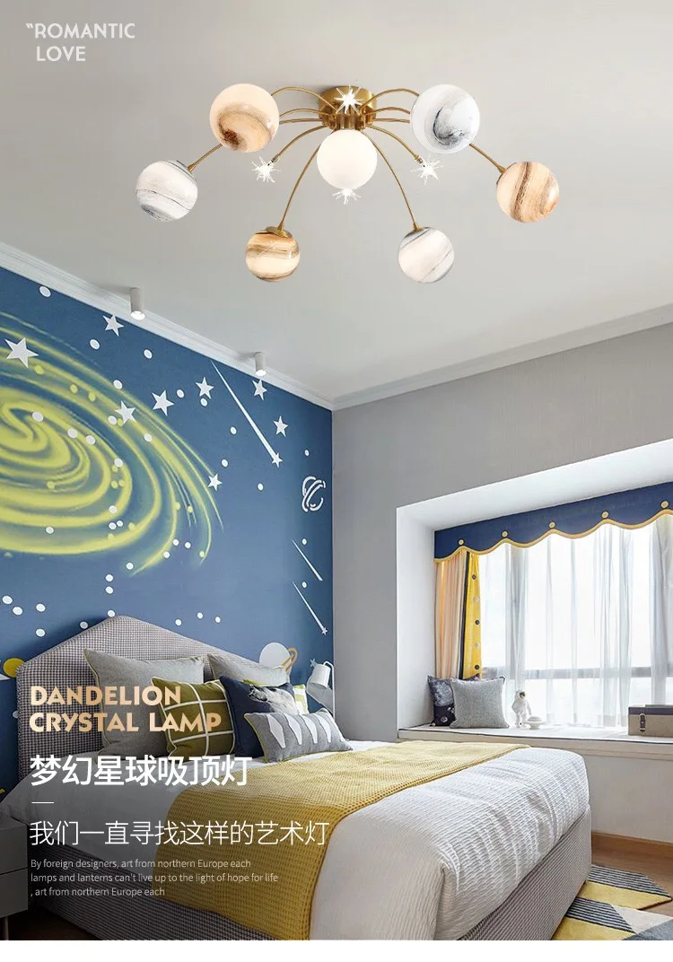 Nordic Led Chandeliers eye protection light Planet Creative ceiling Chandelier children's room warm and romantic Glass Lamp