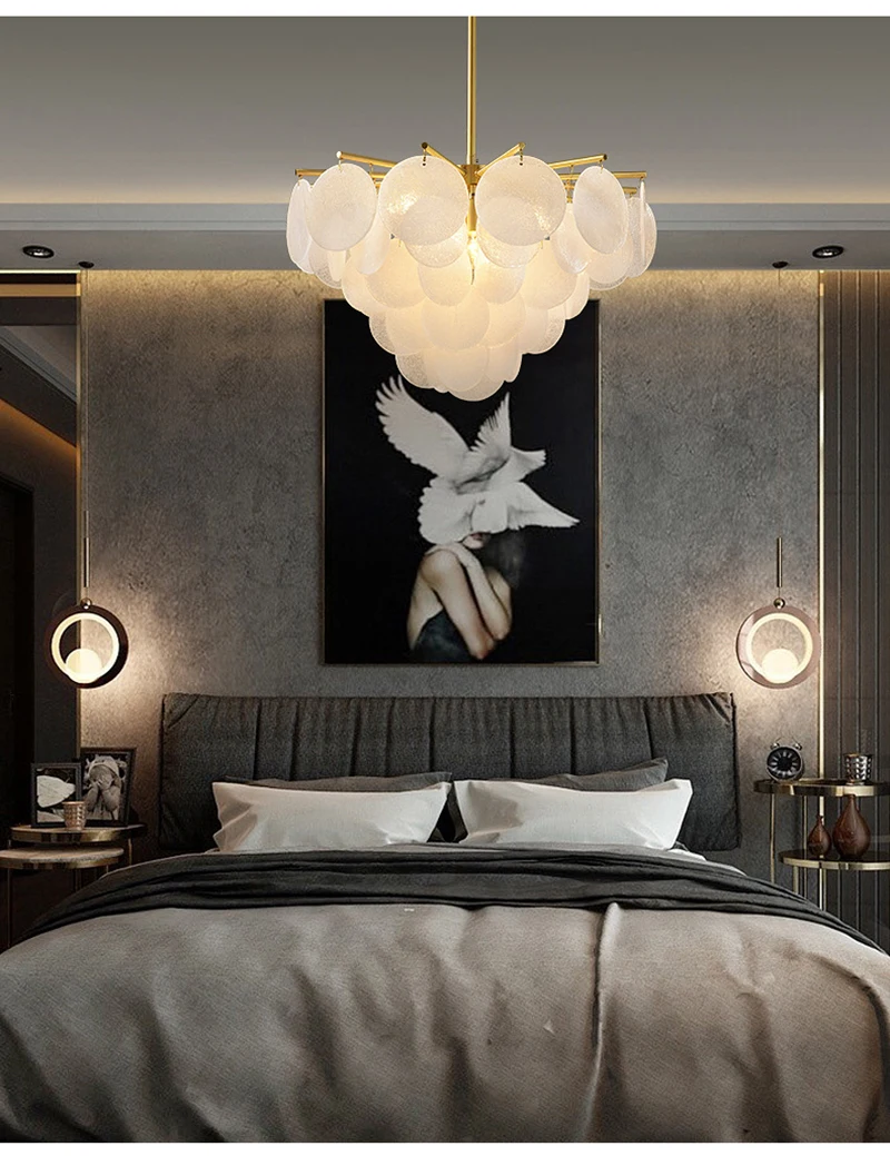 Modern LED Chandelier Diamond Glasses Lustre Frosted Glass Hanging Lamps Luxury Living Bedroom Pendant Lighting Fixtures