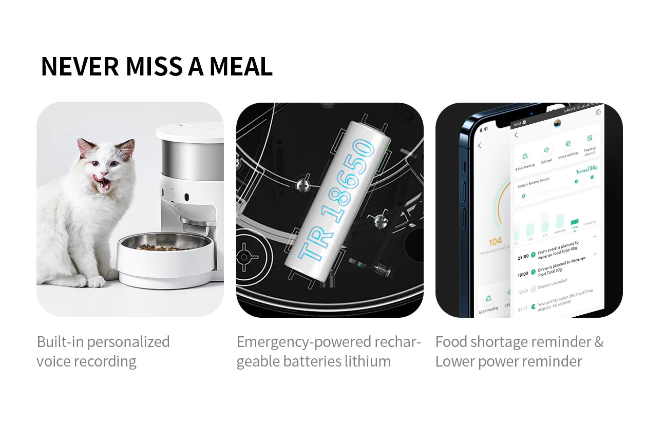 Raise pets intelligently and customize exclusive feeding programs. By connecting to the petkit APP, you can set a regular and quantitative automatic feeding plan, and you can adjust the number and time of feeding at any time. Even on the go, you can remotely control and add meals with one touch.