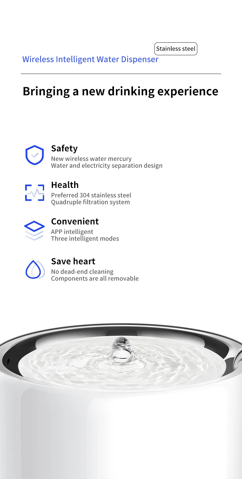 Petkit EVERSWEET V6 Pro Water Fountain UVC Wireless Water Pump APP Control Cat Water Drinker Stainless Steel Pet Water Dispenser