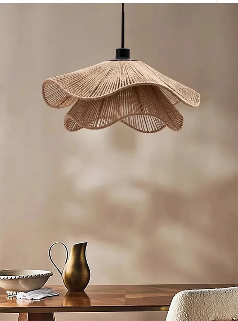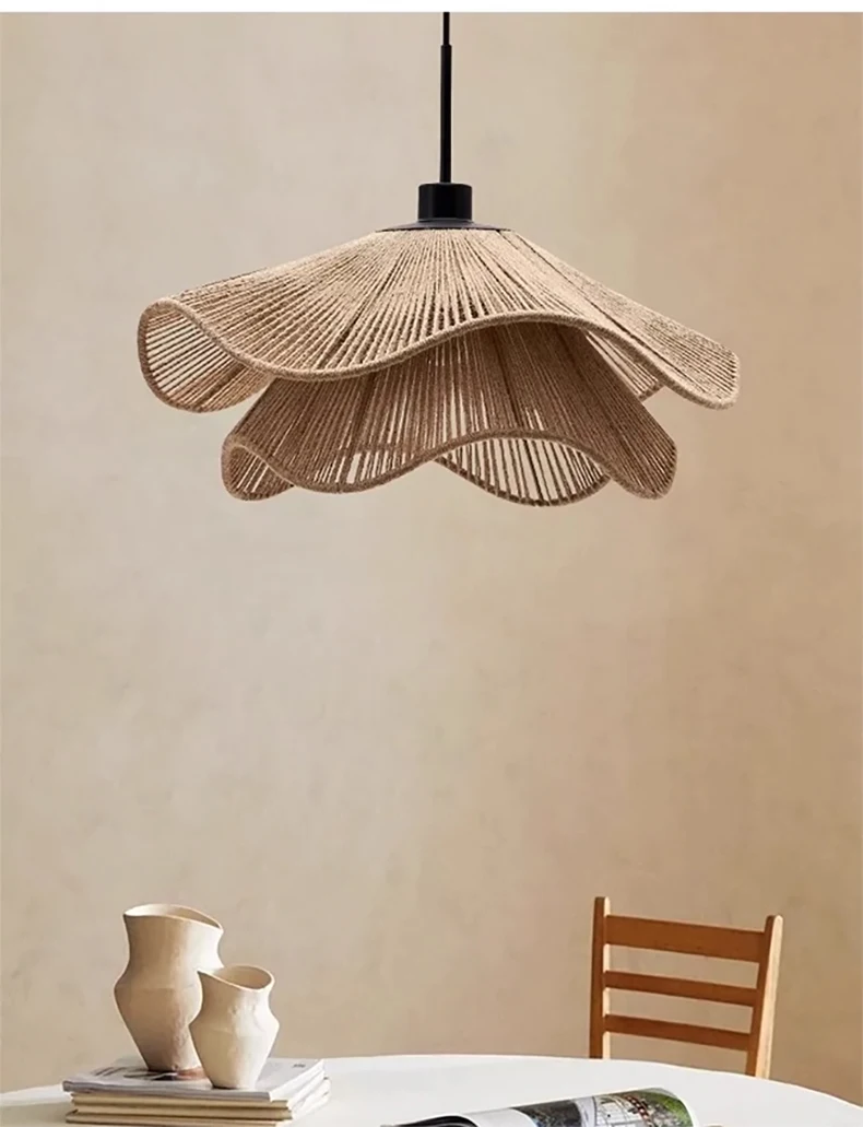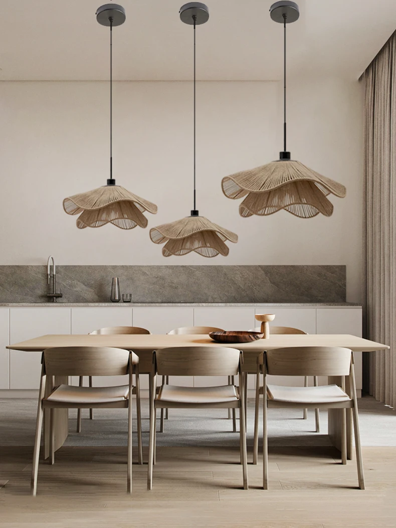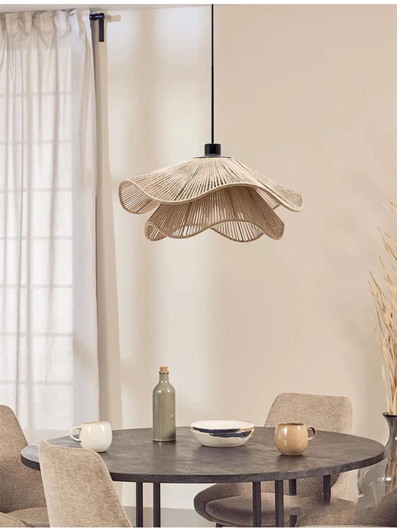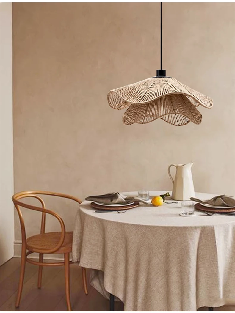 Nordic Minimalist Wabi Sabi Hemp Rope Ceiling Chandelier Restaurant Bedroom Led Pendant Lights Dining Room Hanging Lamp Fixture
