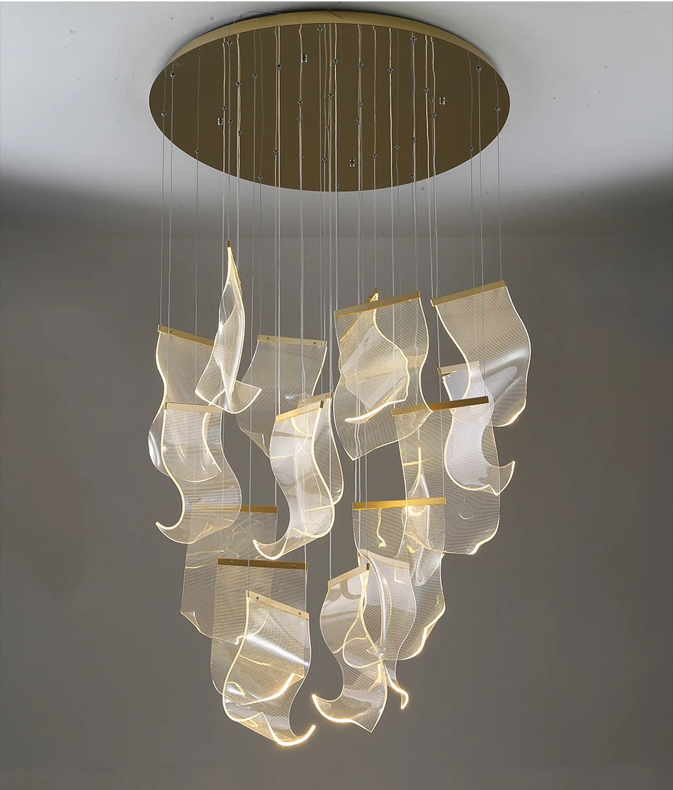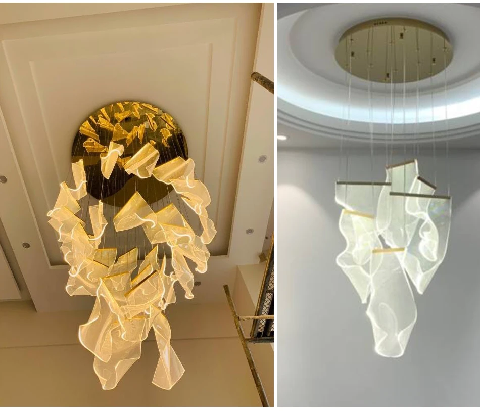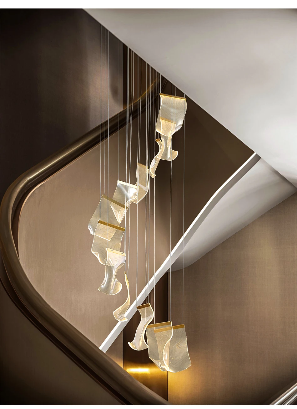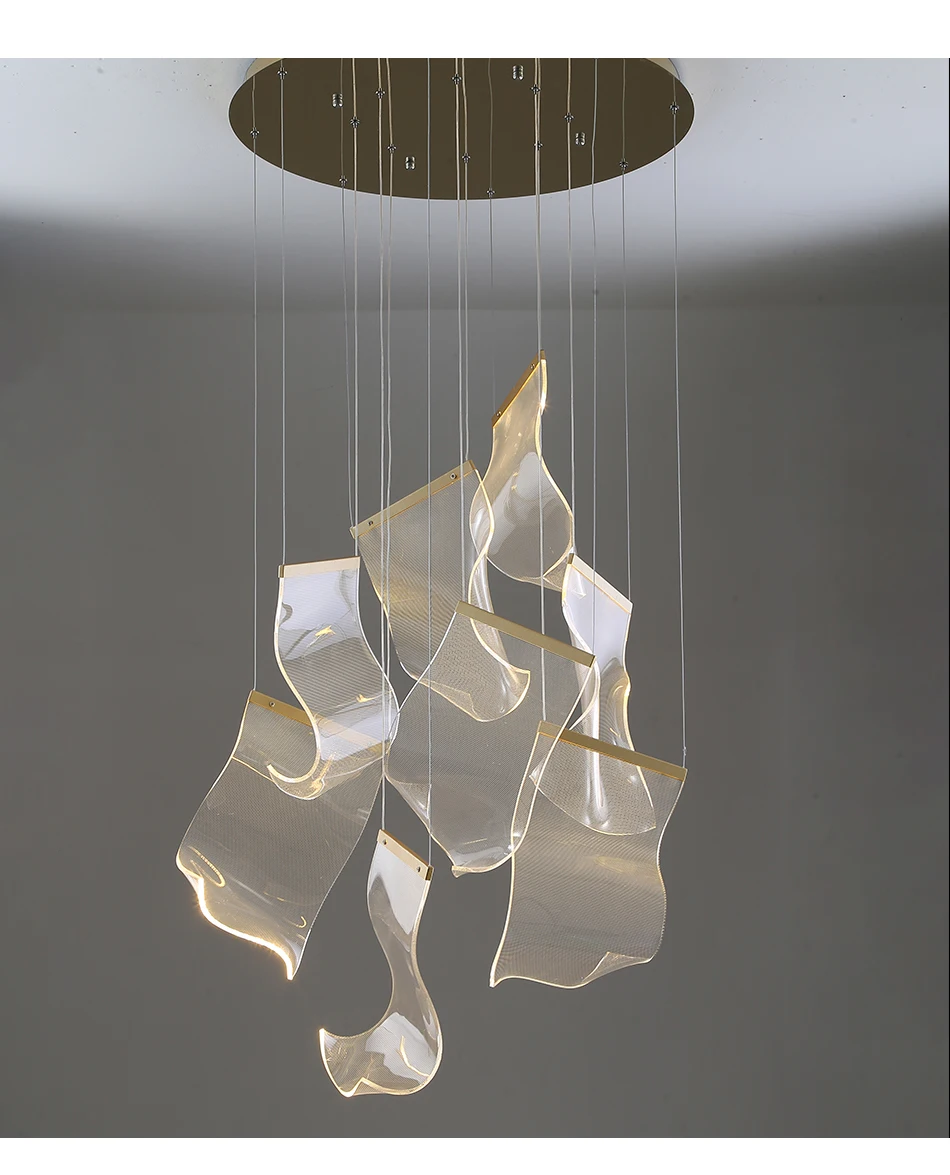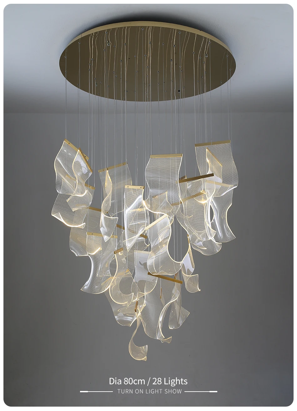 Paper Art Led Ceiling Chandelier Acrylic Large Staircase Pendant Light Living Room Kitchen Decor Hanging Lamp Home Light Fixture