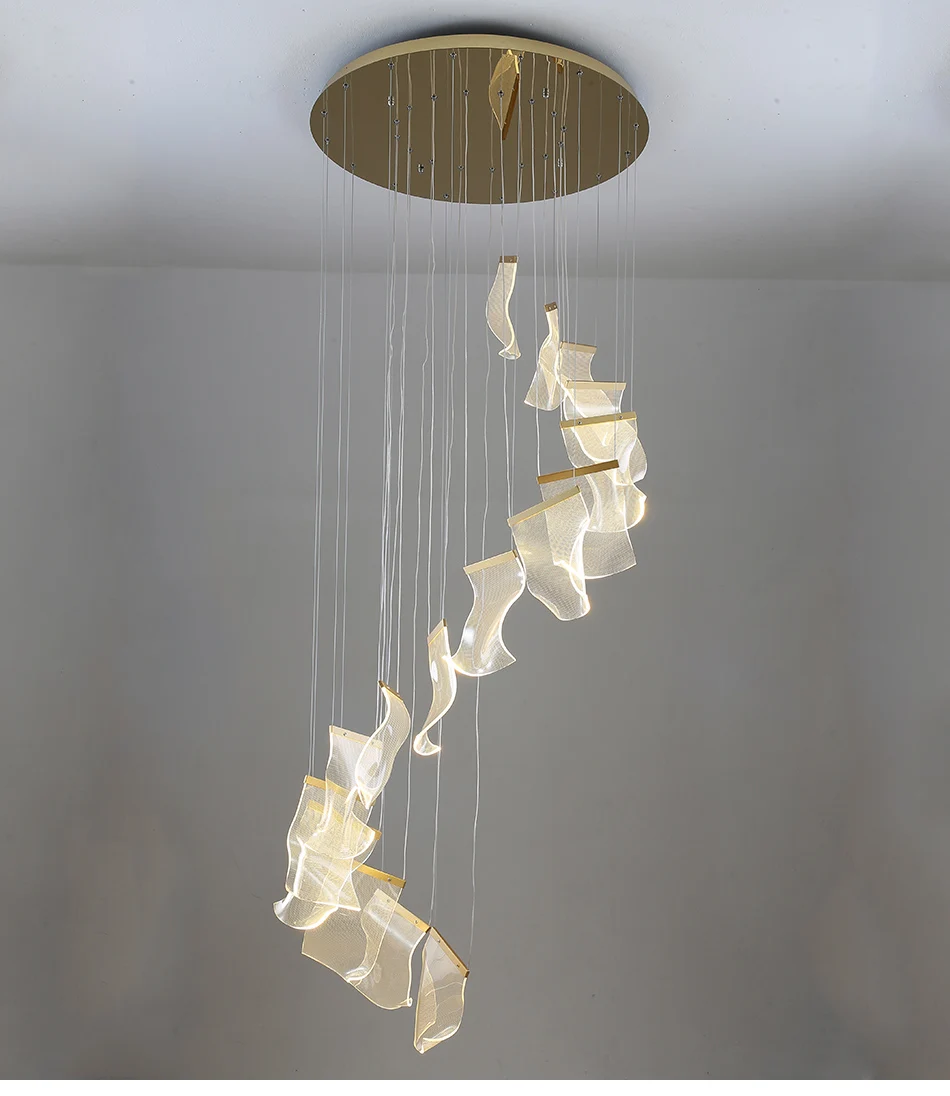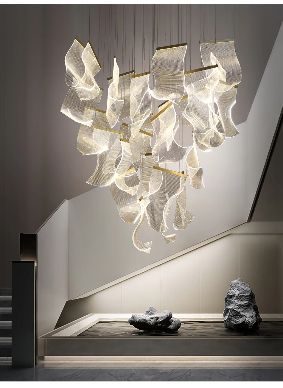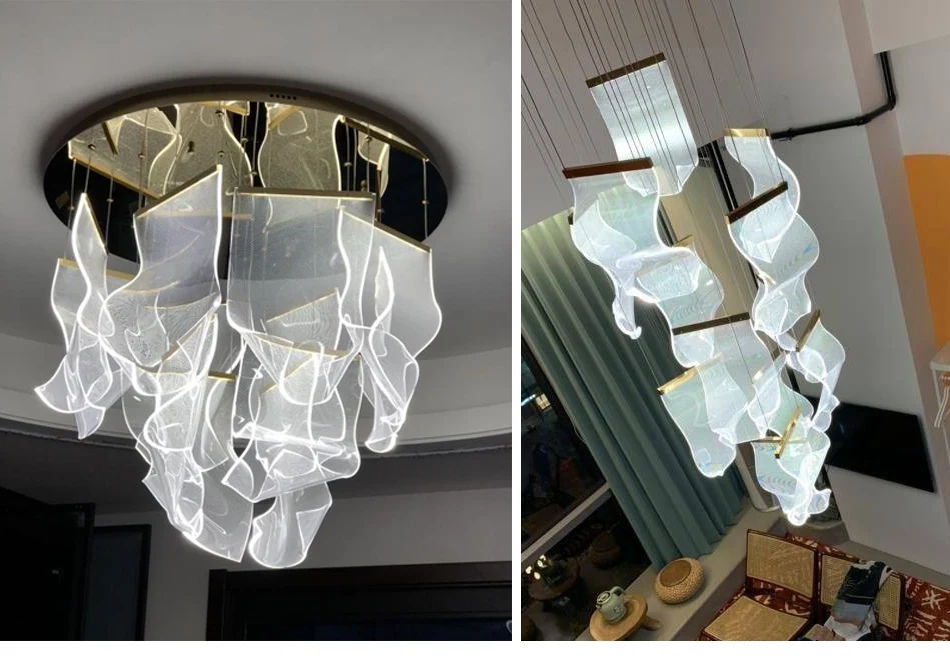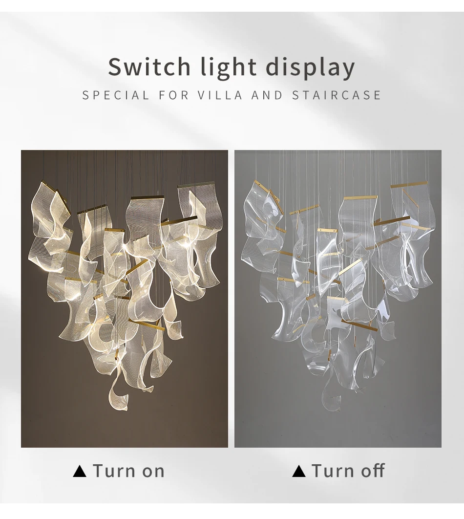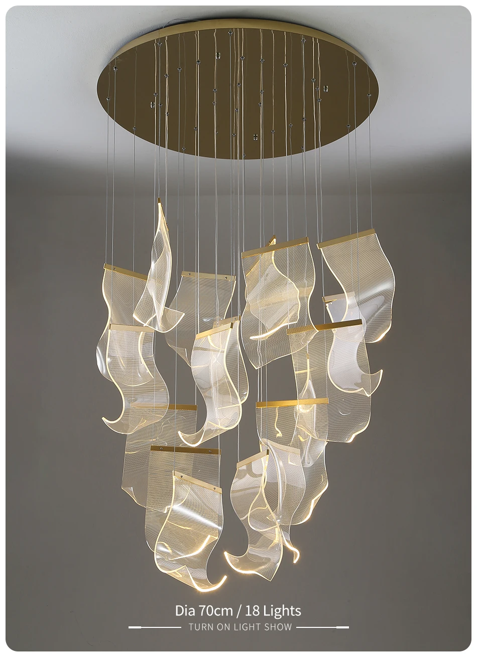 Paper Art Led Ceiling Chandelier Acrylic Large Staircase Pendant Light Living Room Kitchen Decor Hanging Lamp Home Light Fixture
