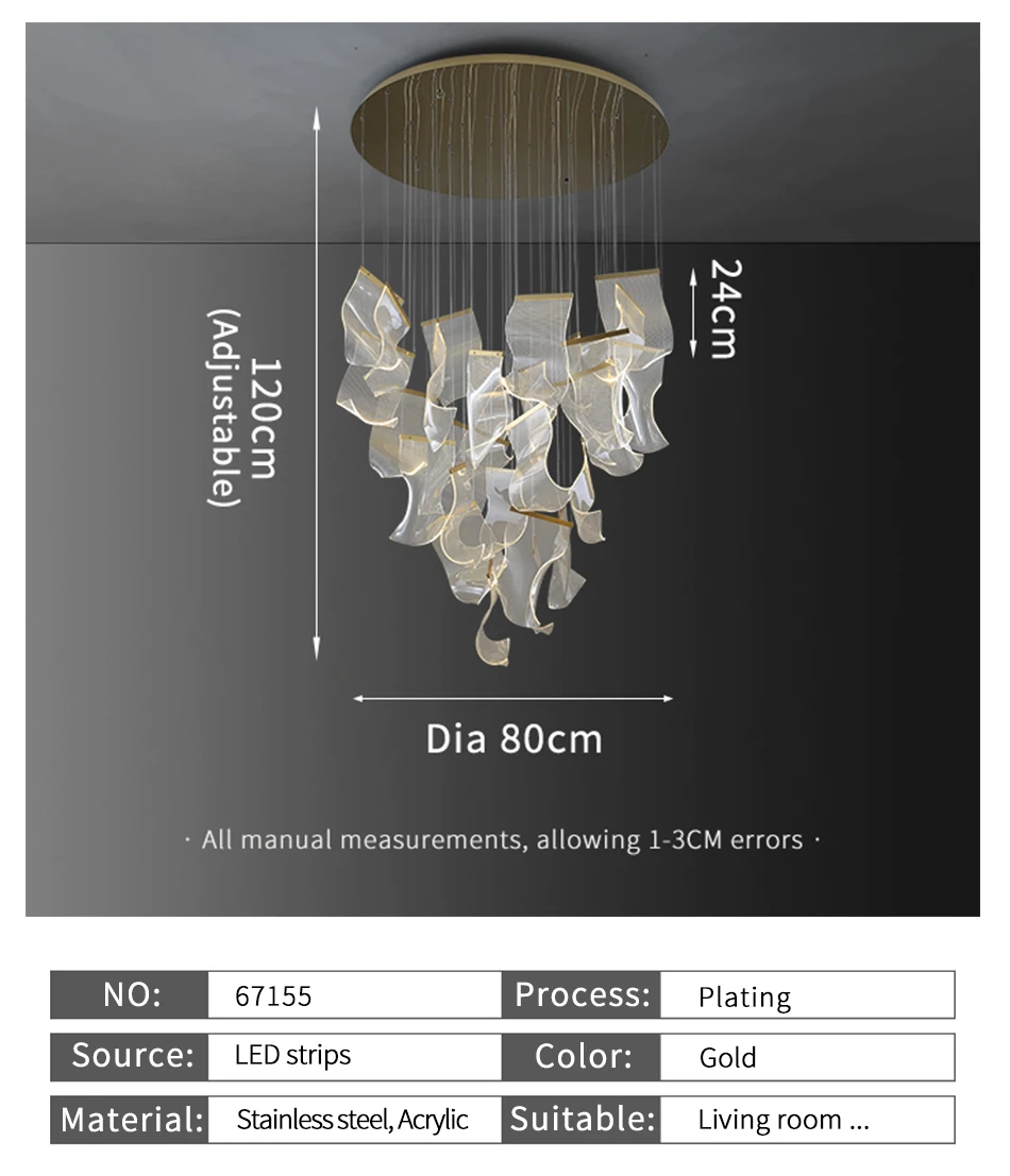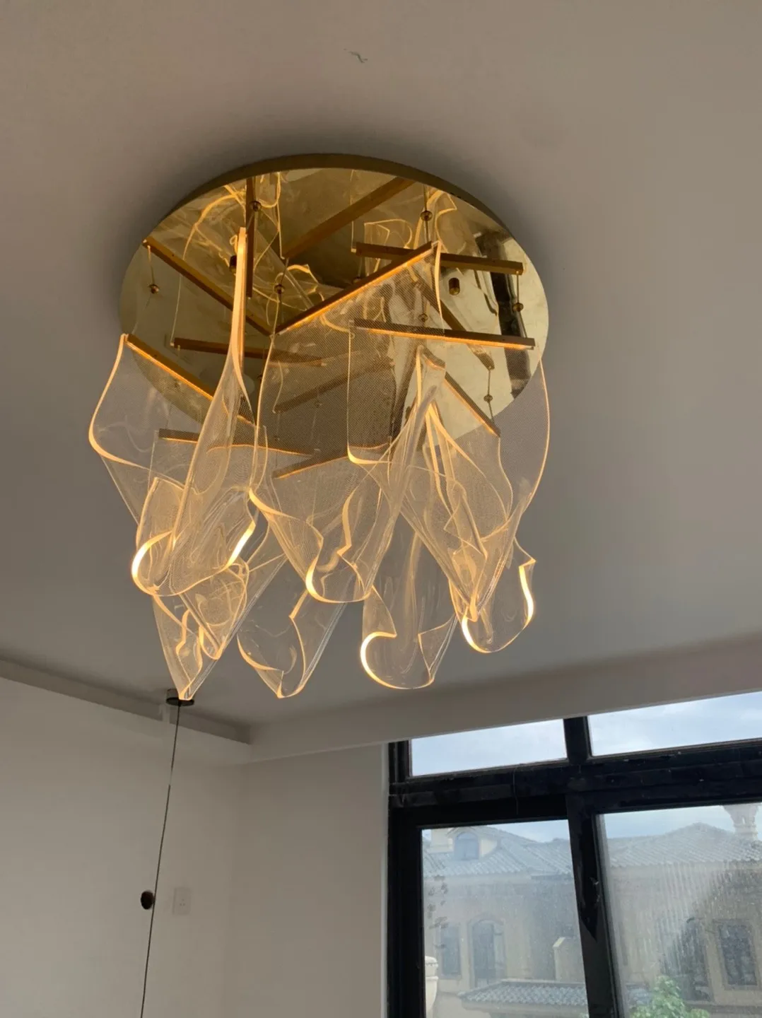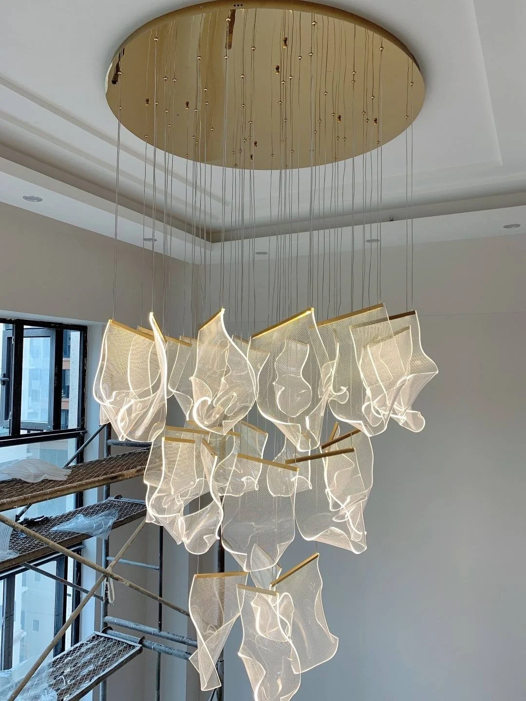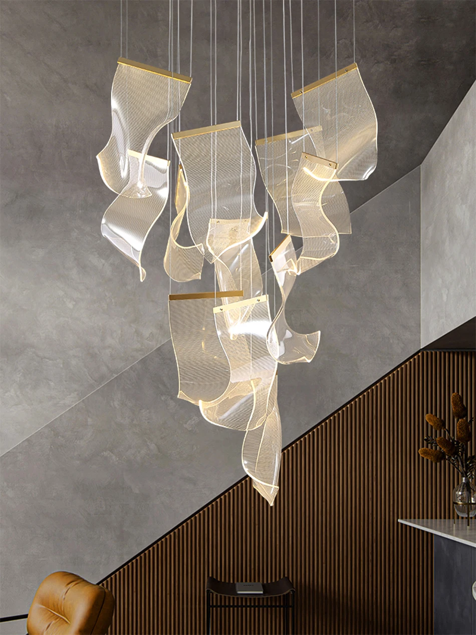 Paper Art Led Ceiling Chandelier Acrylic Large Staircase Pendant Light Living Room Kitchen Decor Hanging Lamp Home Light Fixture