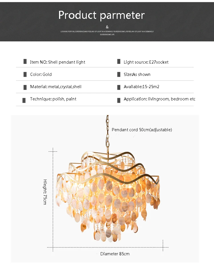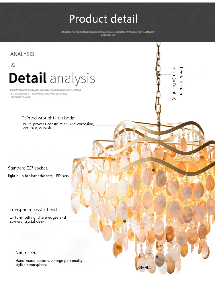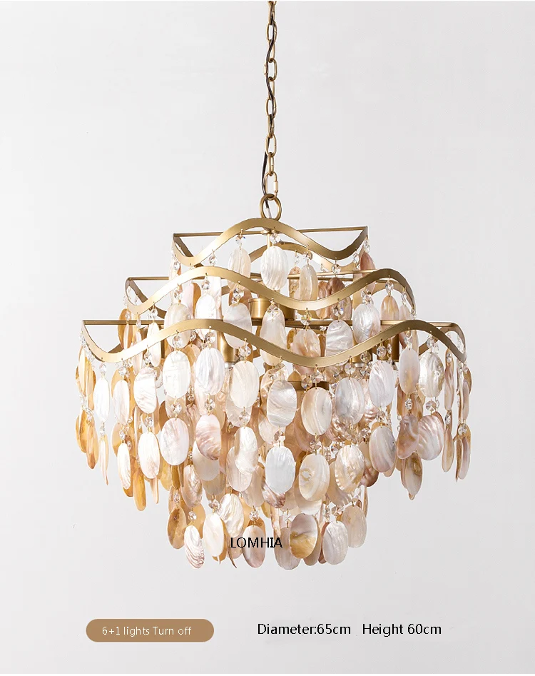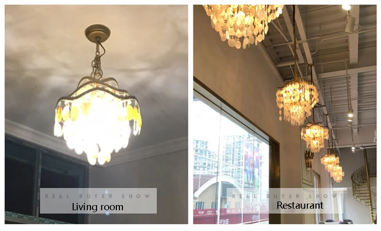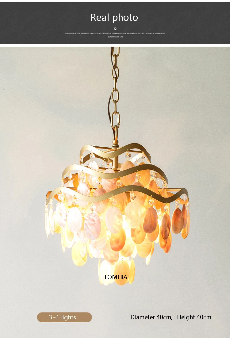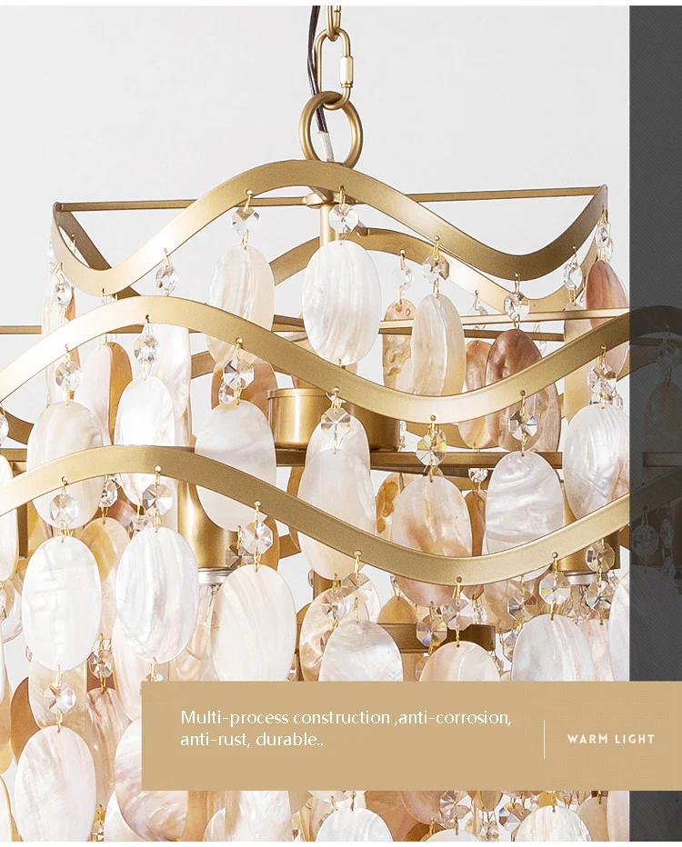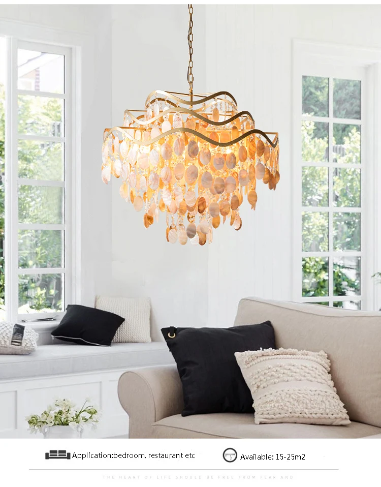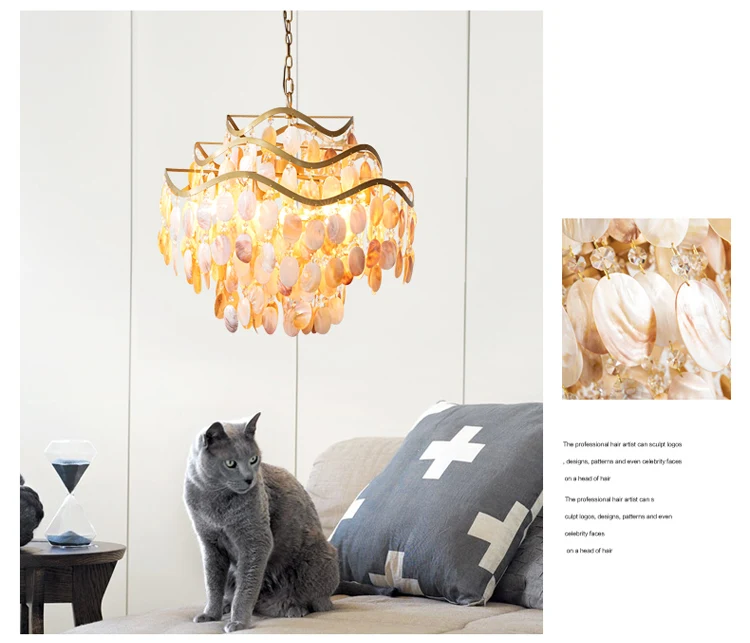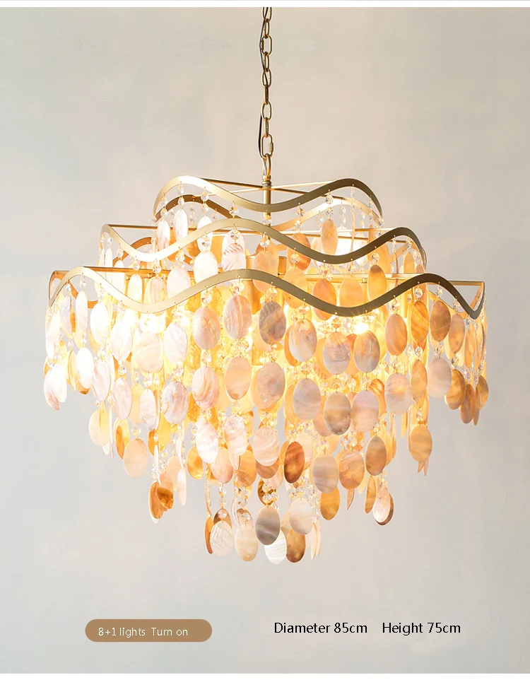 Postmodern LED Chandeliers Home Indoor Hanging Pendant Lights Living Dining Room Decor Pendant Lamp Capiz Seashell Art Lustre