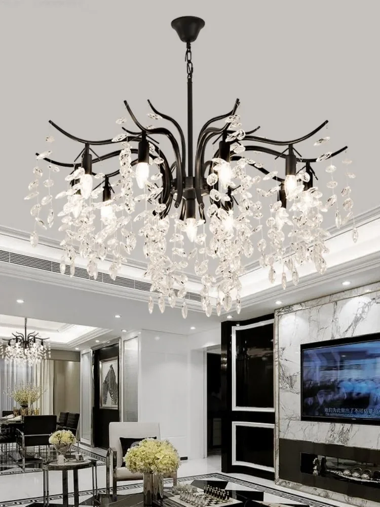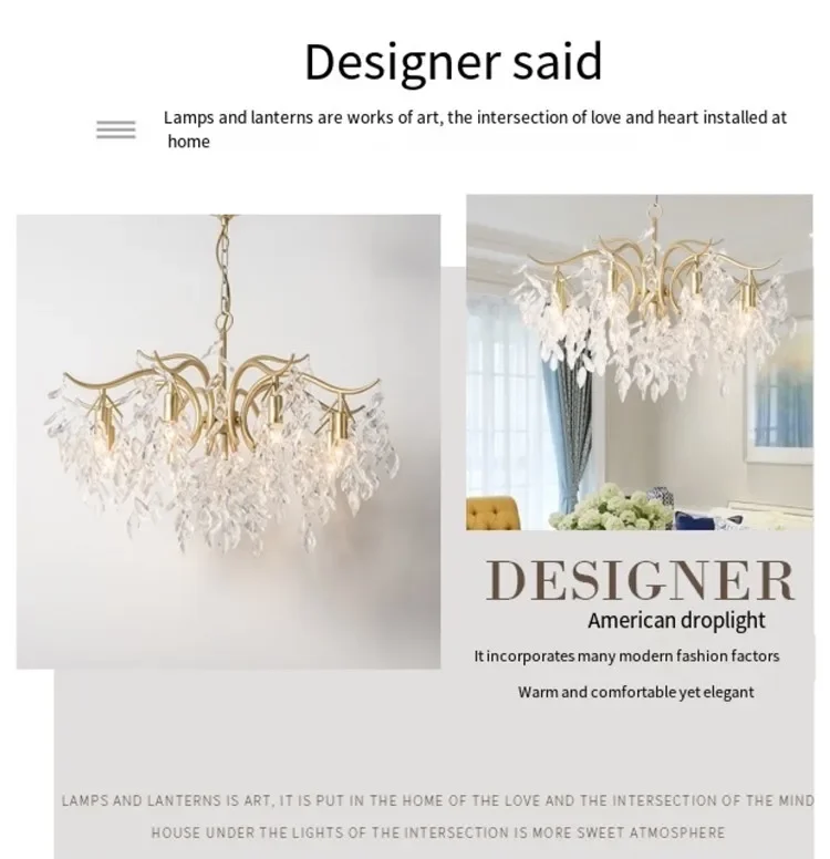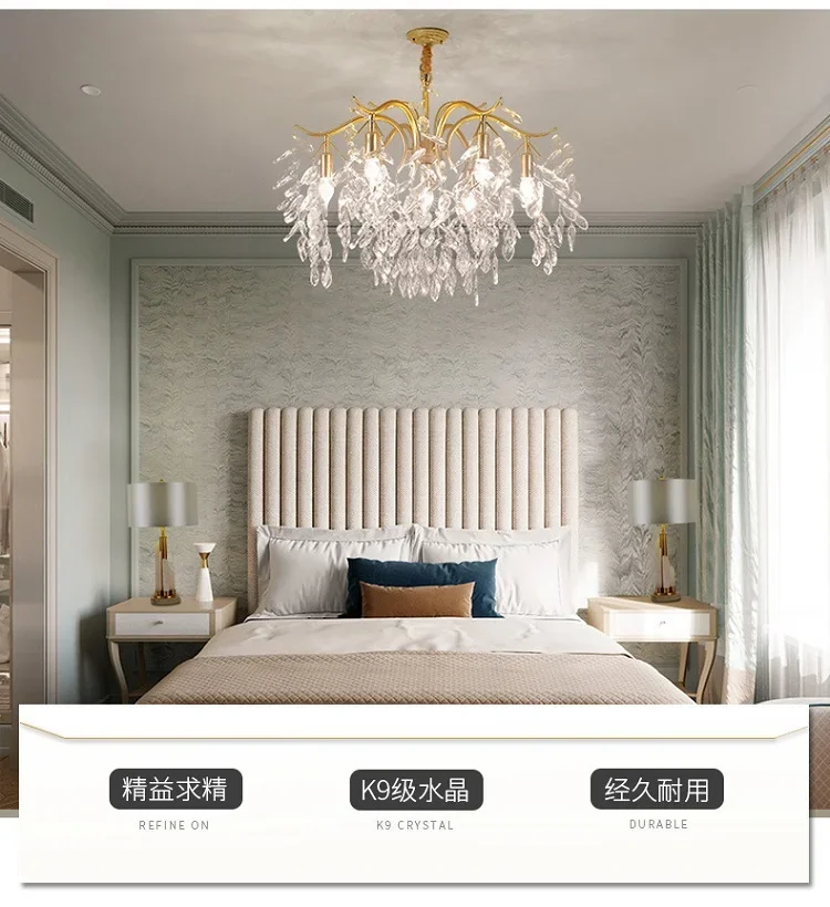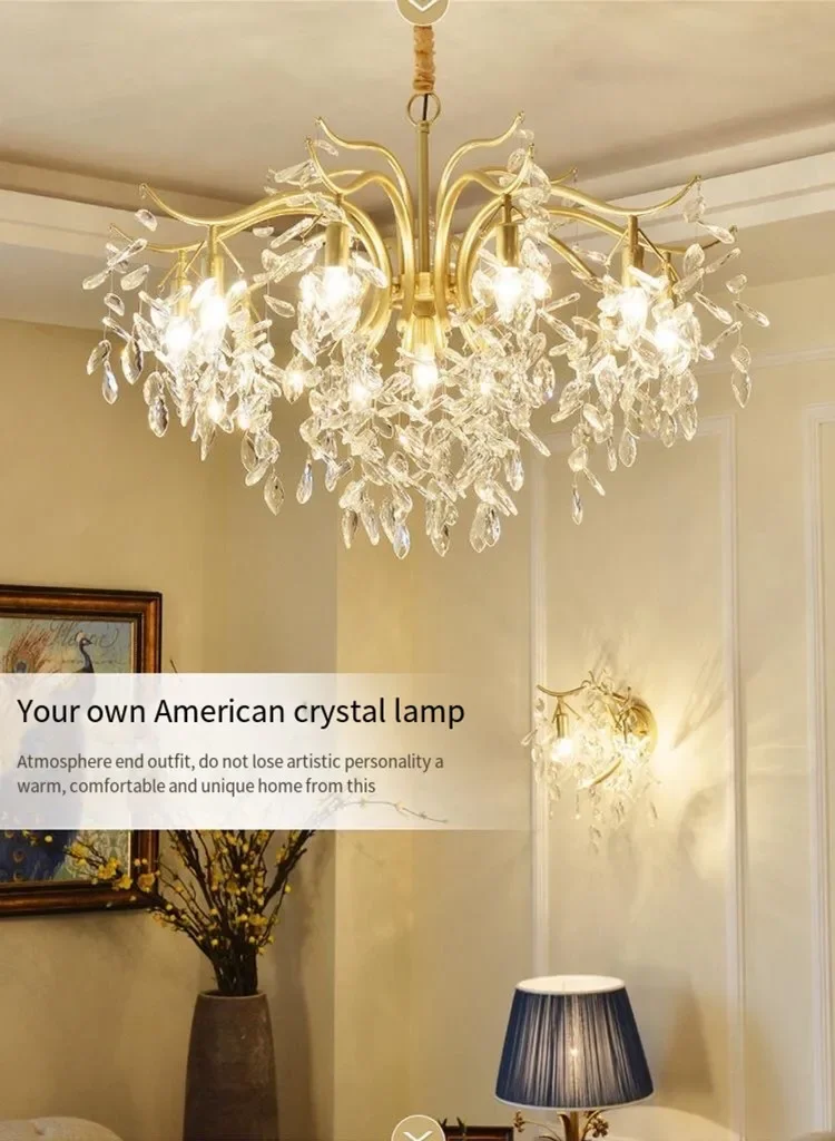 Postmodern Light Luxury Crystal Chandelier American Living Room Lamp Internet Celebrity Bedroom Restaurant Golden Headlight