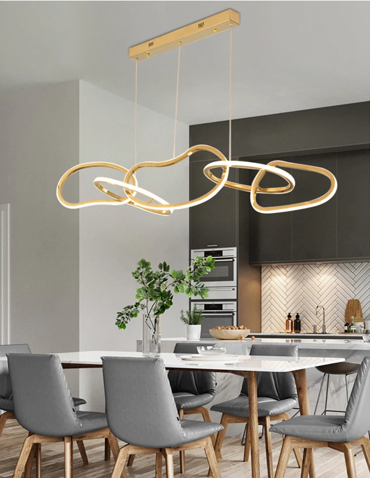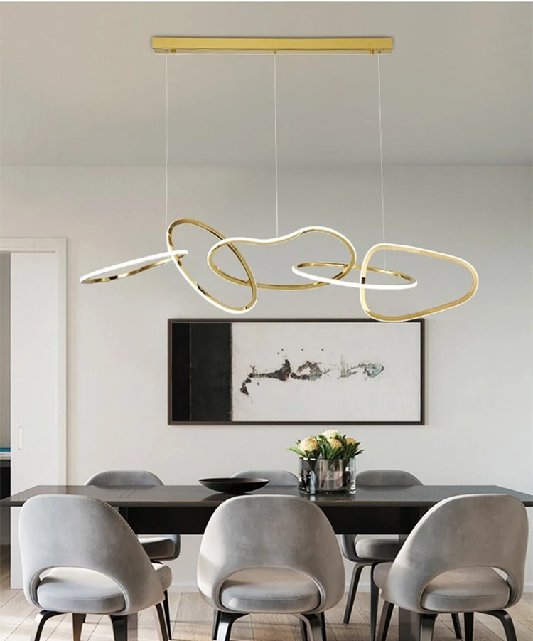 Postmodern Luxury Gold Led Ring Ceiling Chandelier For Bar Bedroom Hotel Stainless Steel Lustre Restaurant Lighting Pendant Lamp