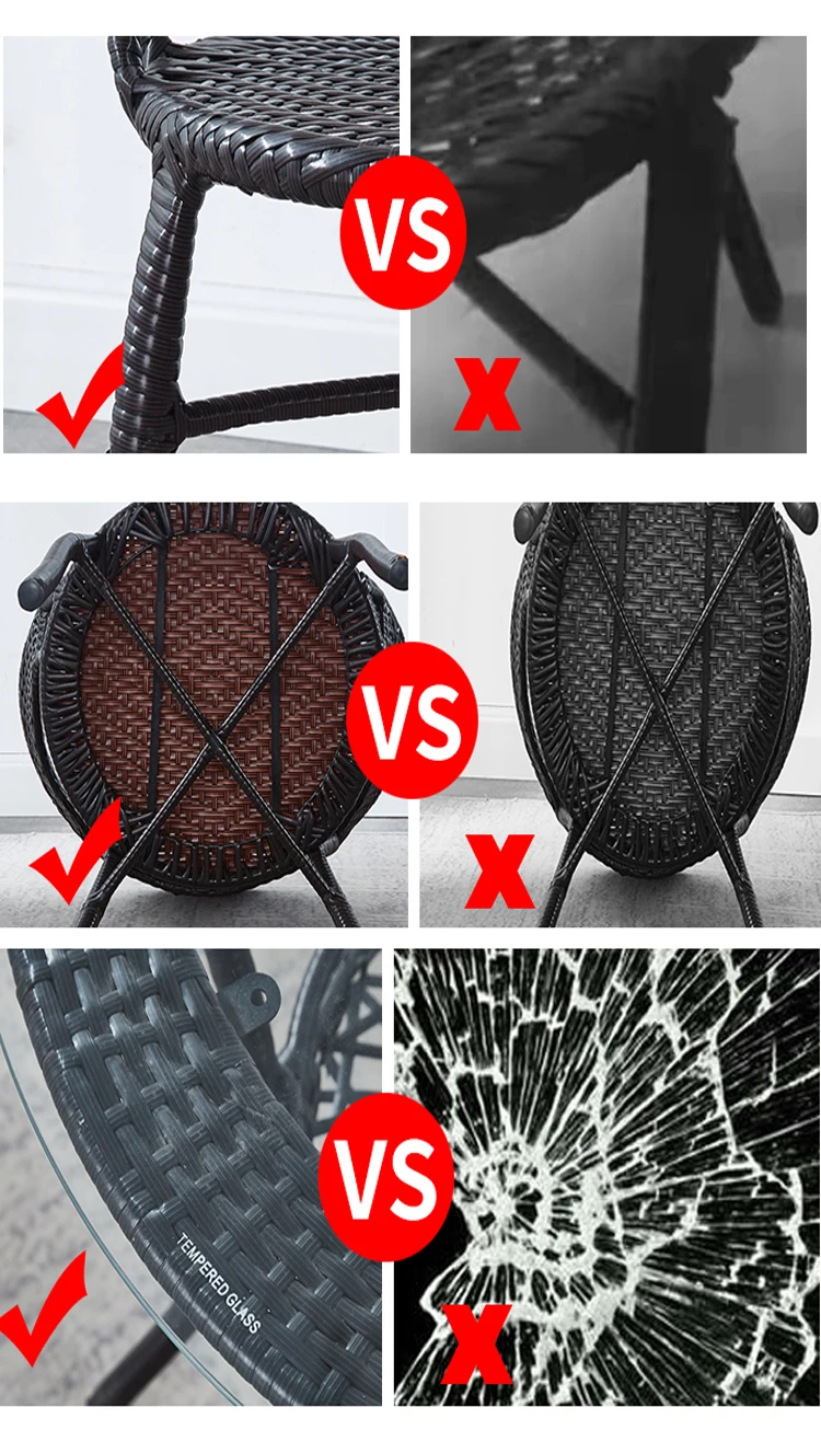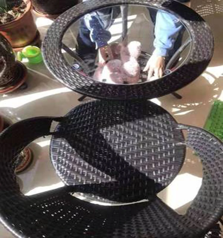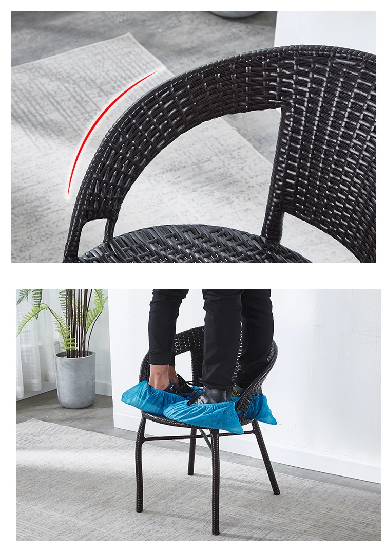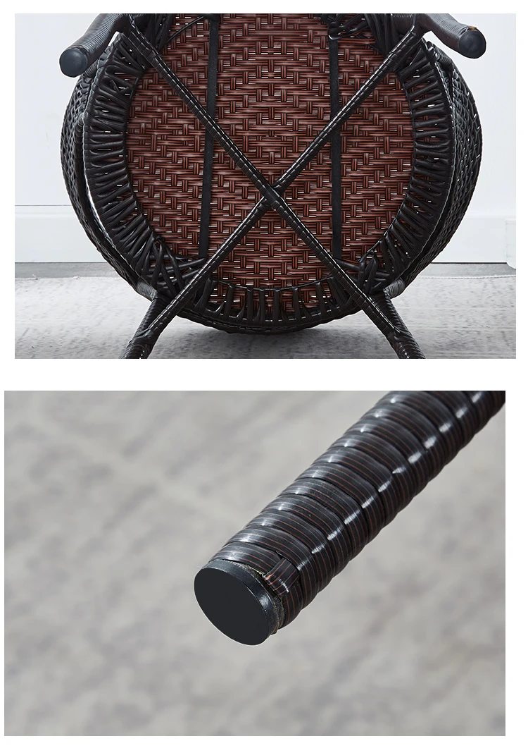 High-quality environmentally friendly PE rattan is fully woven, and the PE rattan has good sun-proof, waterproof and breathable. The bottom is equipped with non-slip pads. Effectively protect the floor With a wrought iron bracket, the bottom is a cross design,
