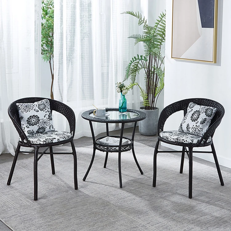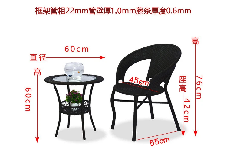 Balcony small table and chair outdoor rattan chair three-piece outdoor leisure coffee table teng chair combination garden hand-woven back chair