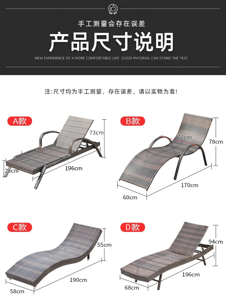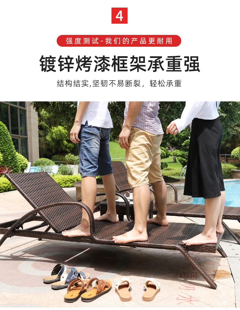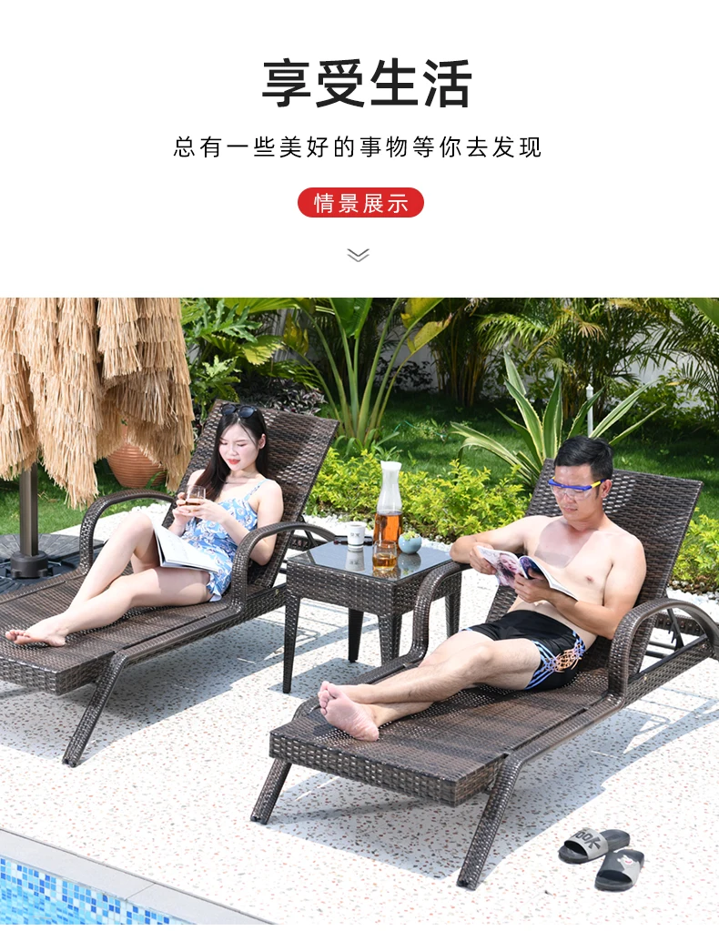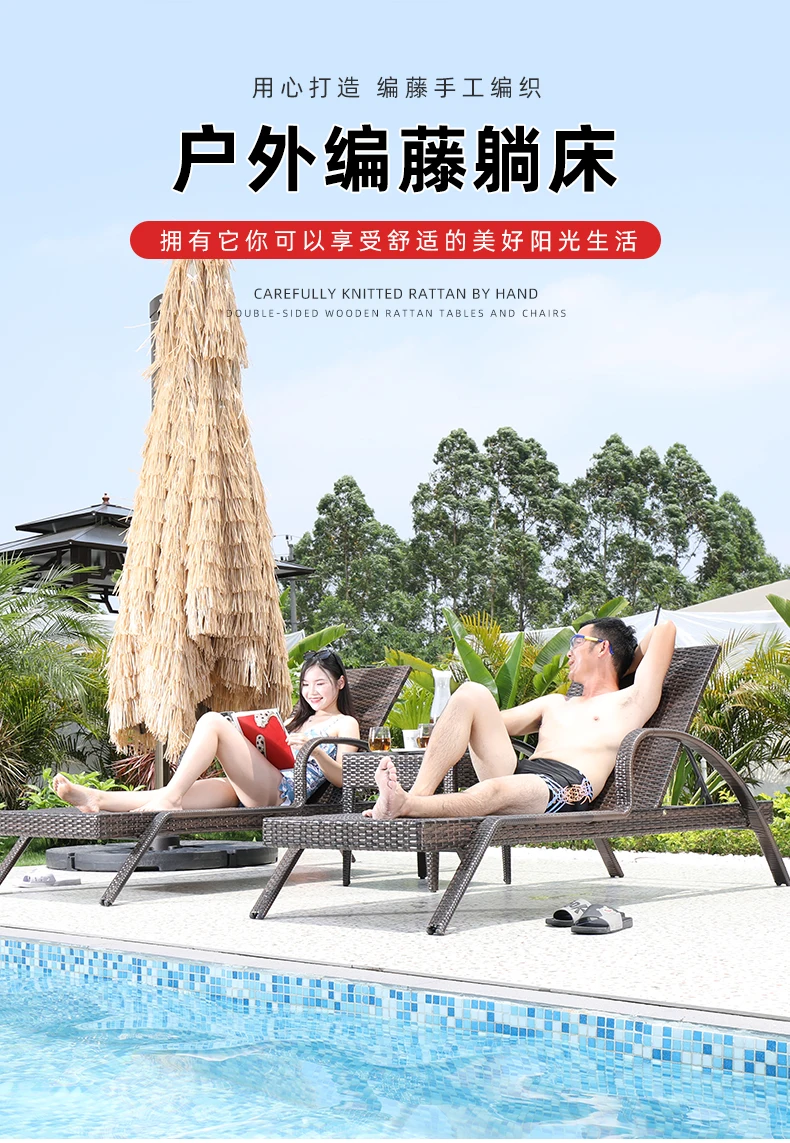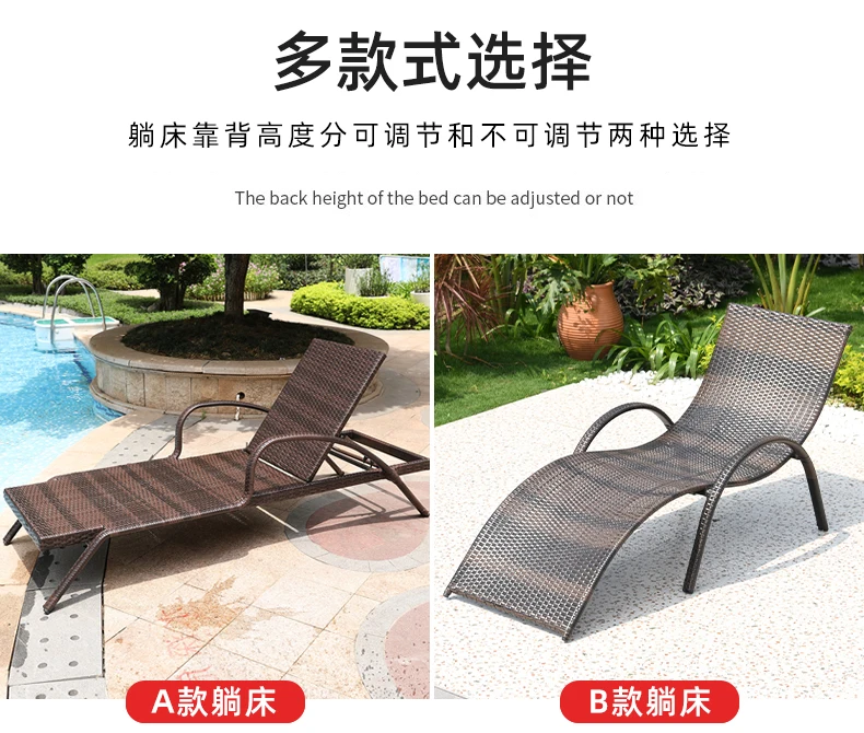 Rattan Recliner Beach Chair Sun Loungers Swimming Outside Pool Beach Chair Armrest Adults Free Shipping Silla Playa Furniture