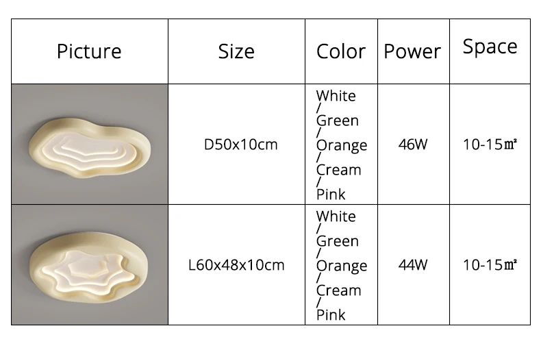 A White/Green/Orange/Coffee/Pink D50x10cm 46w
