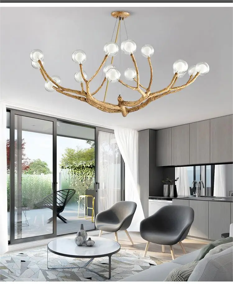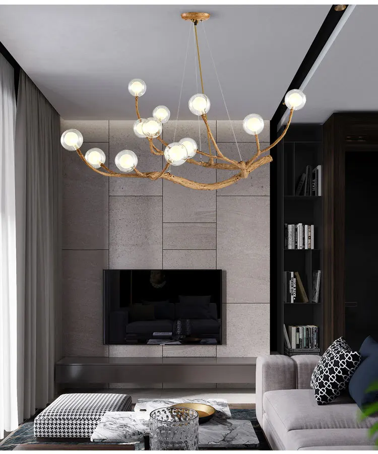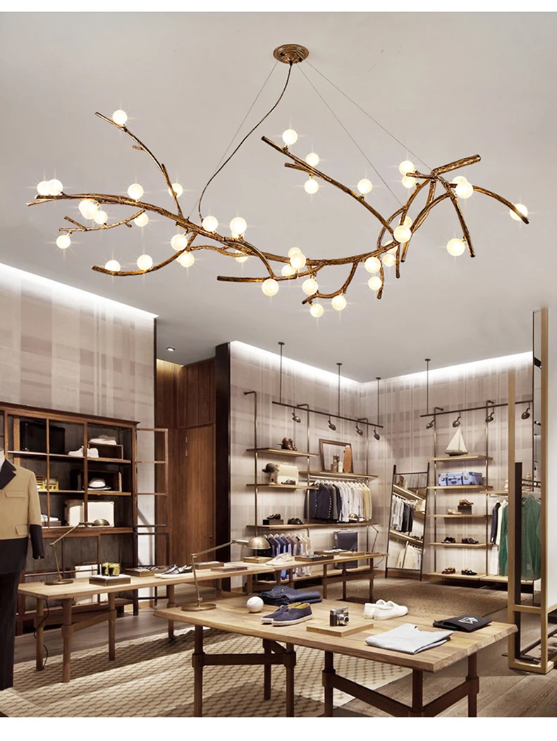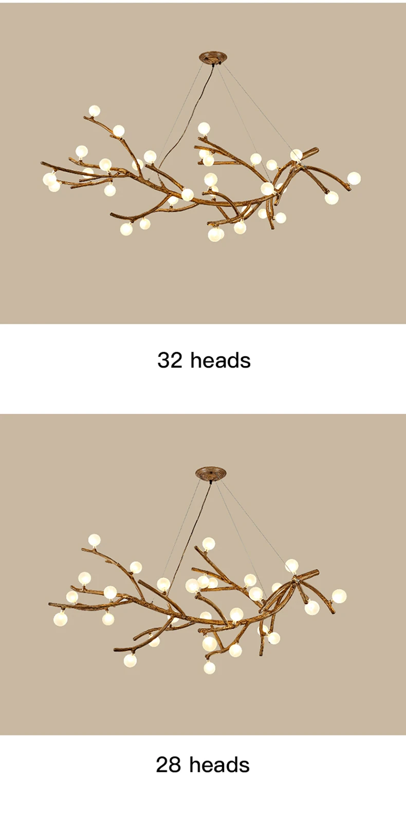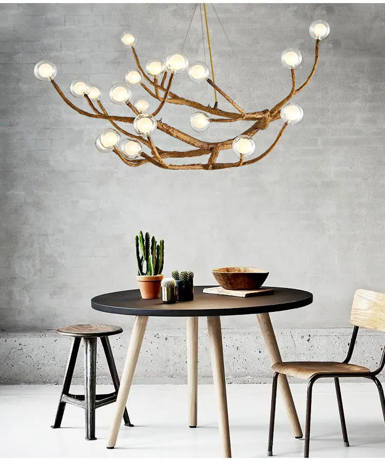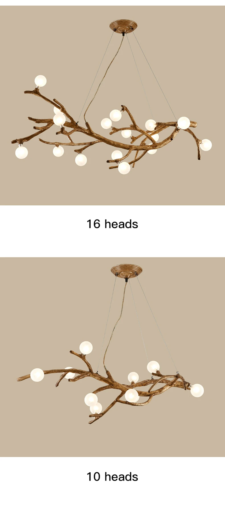 Retro LED Chandeliers Lighting Fixtures Living Room Bedroom Study Room Tree Branch Art Brown Antique Decor Hanging Pendant Light
