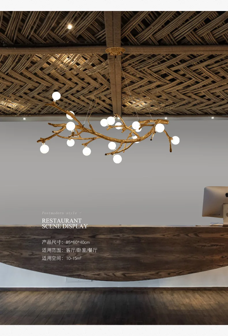 Retro Nordic Wood Twigs LED Chandelier For Dining Room Kitchen Living Bedroom Ceiling Pendant Lamp G4 Design Hanging Light
