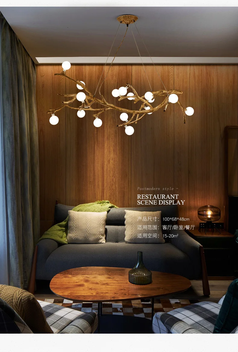 Retro Nordic Wood Twigs LED Chandelier For Dining Room Kitchen Living  Bedroom Ceiling Pendant Lamp G4 Design Hanging Light