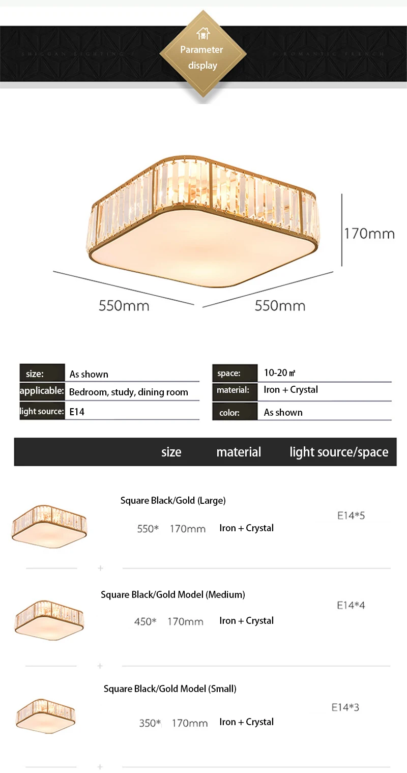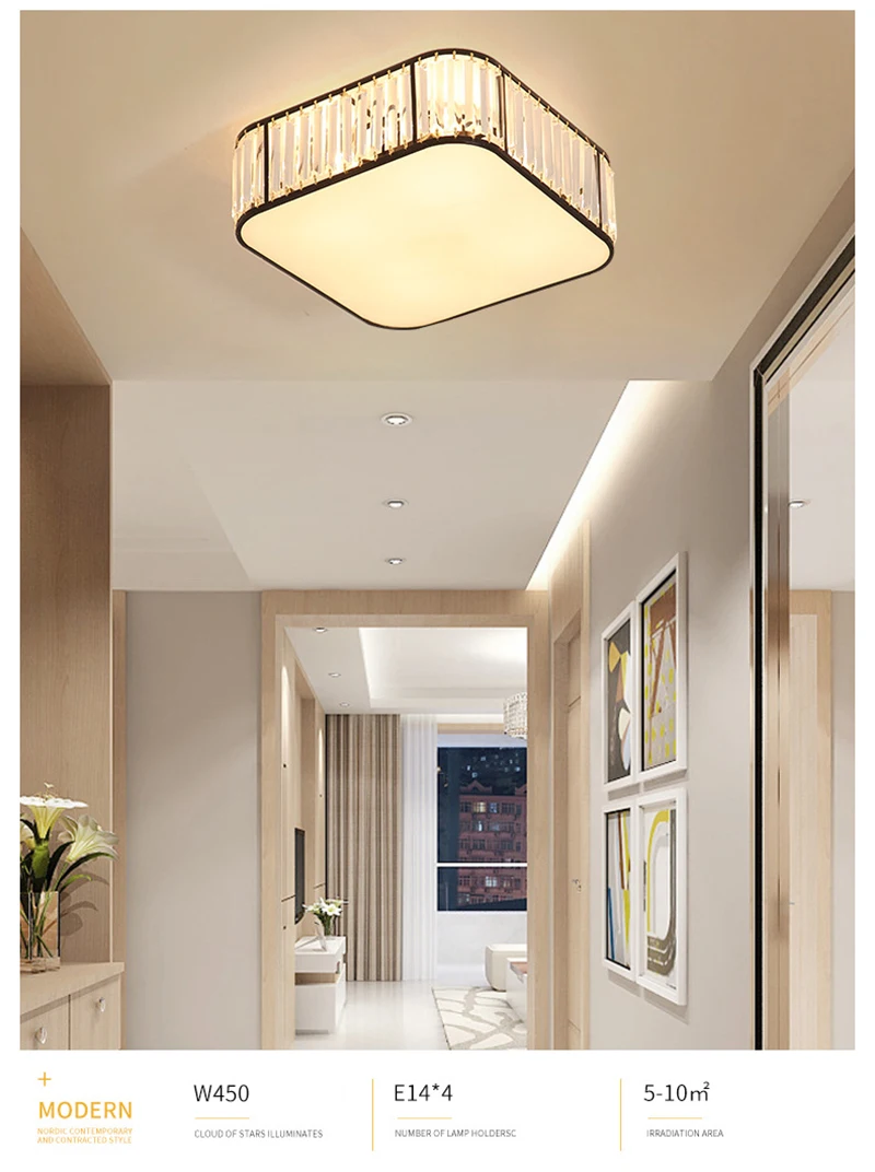 Round Square LED Crystal Ceiling Lights for Living Room Bedroom Kitchen Decoration Ceiling Chandeliers Lamps Home Indoor Aisle Corridor Stair Lights