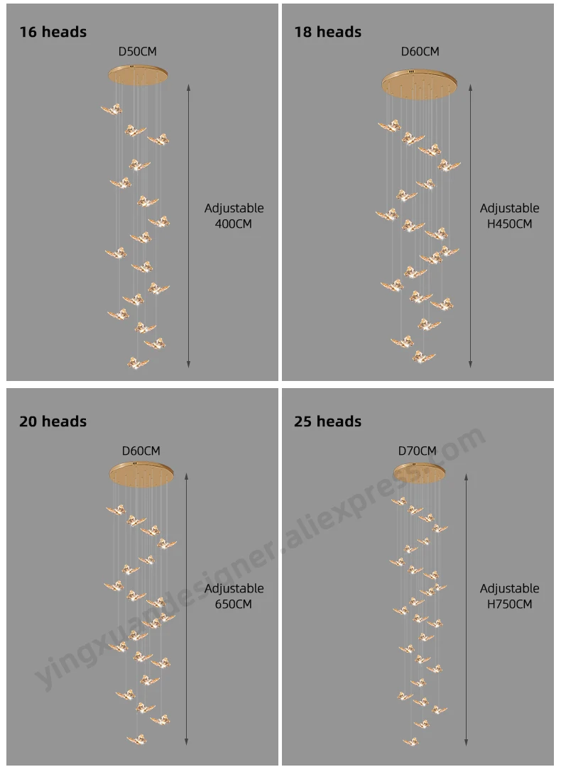 18 heads, chassis diameter 60cm, height lamp+line total length 450cm