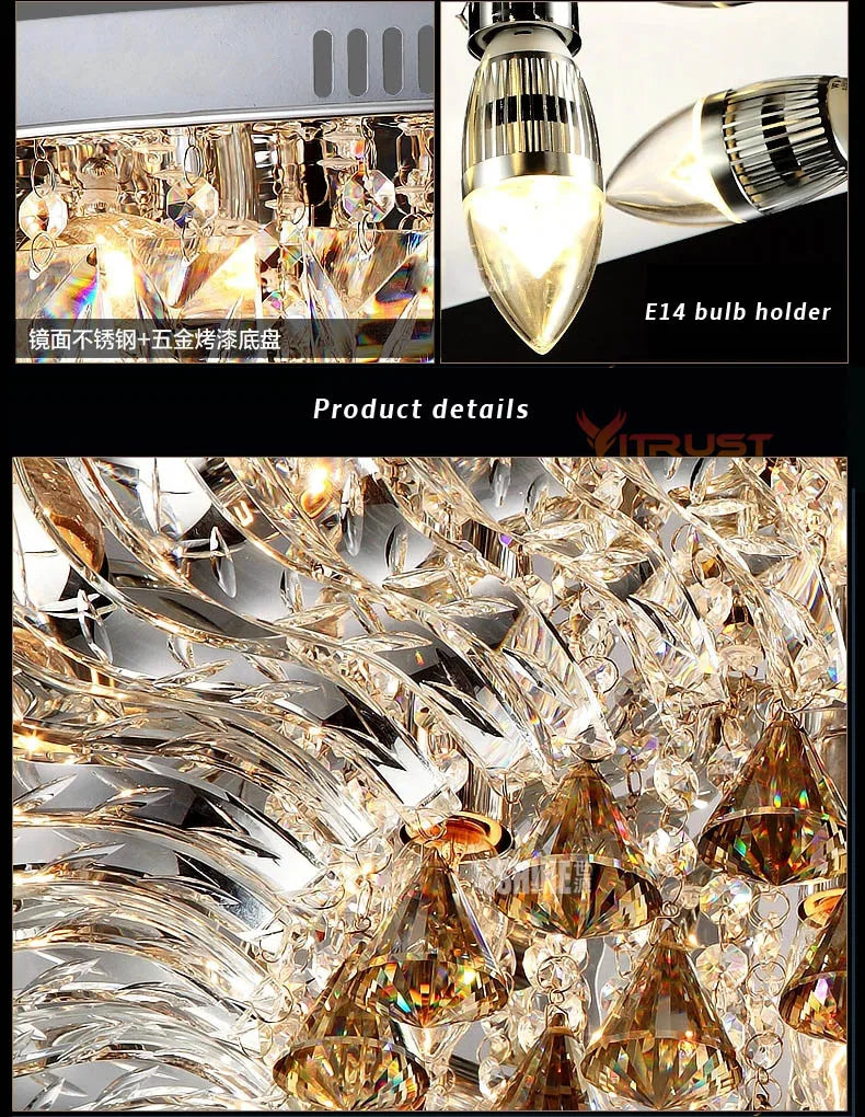 Swan Shape Crystal Ceiling Chandeliers for Living Room Bedroom Modern Stained Glass LED Ceiling Lamps