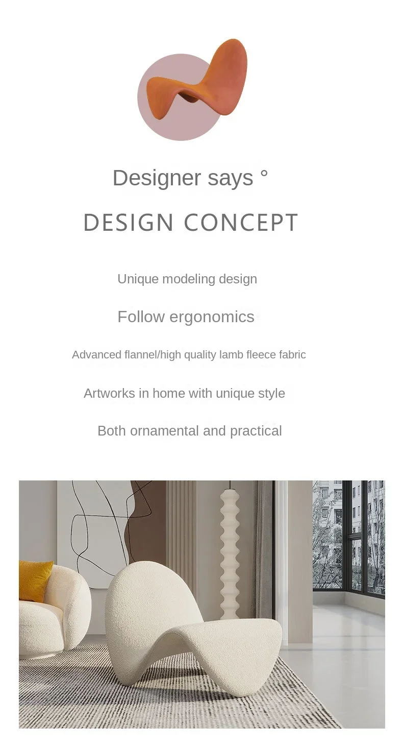 Living Plus Tongue Chair Lazy Person Sofa Single Designer Models Living Room Balcony Lying Leisure Creative Net Red Ins Style Single Chair