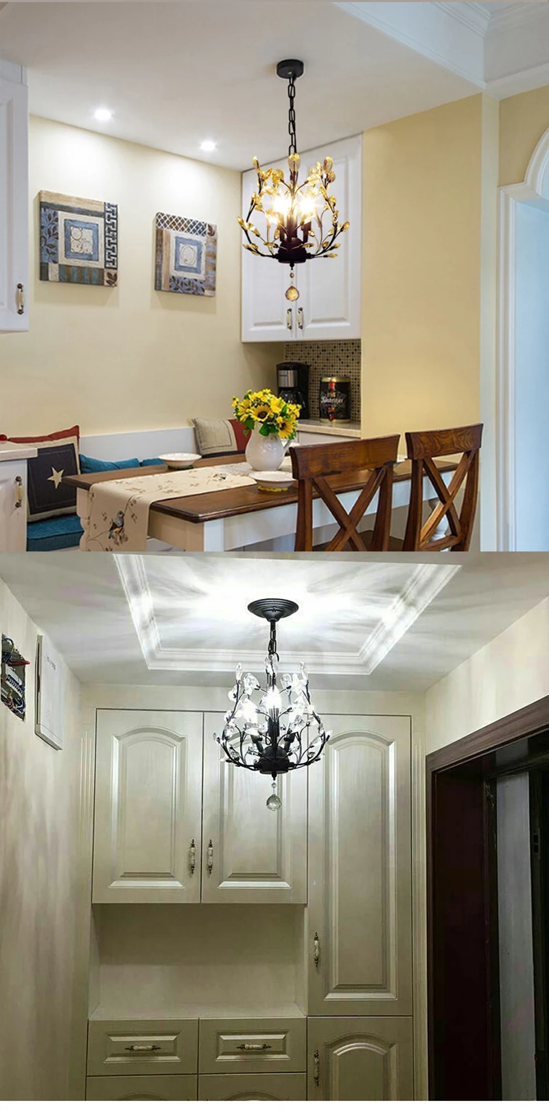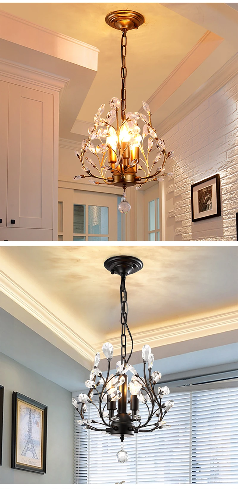Vintage Industrial Style Candle Crystal Chandeliers Home Decoration Pendant Hanging Lighting Living Dining Room Loft Foyer Ceiling Lamps