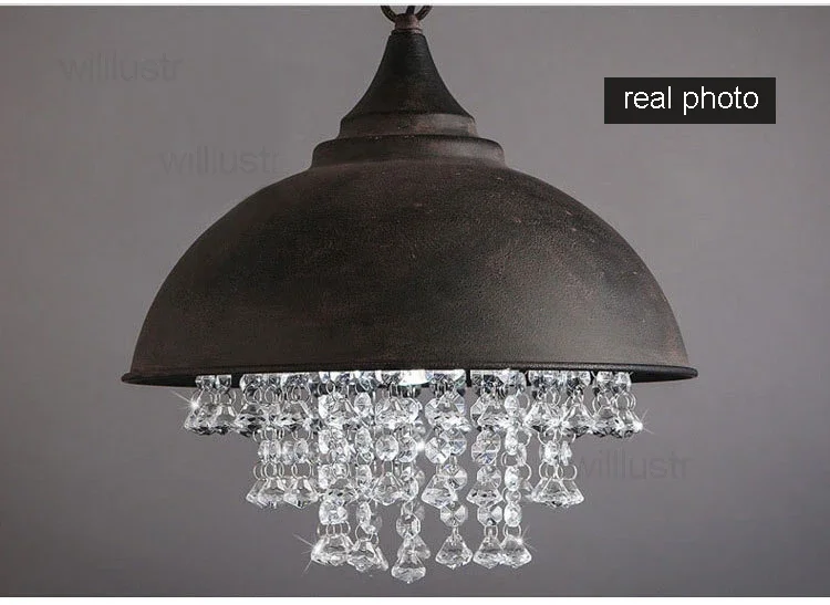 Vintage Iron Crystal Pendant Lamp Home Hotel Dining Bedroom Loft Bar Cafe Antique Ceiling Chandelier Suspension Hanging Lighting